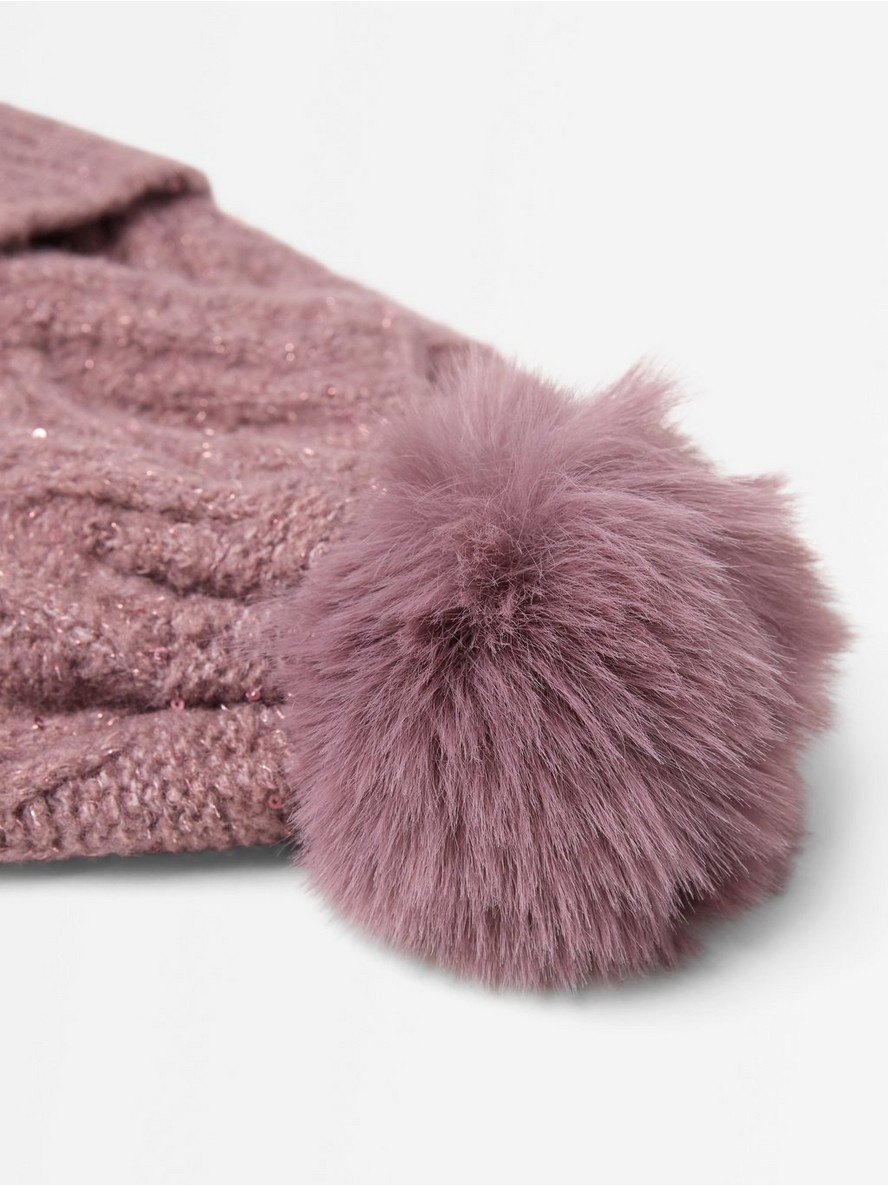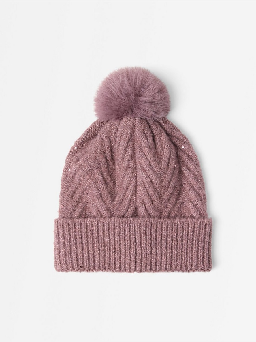 Sjajna pletena kapa sa pomponom.