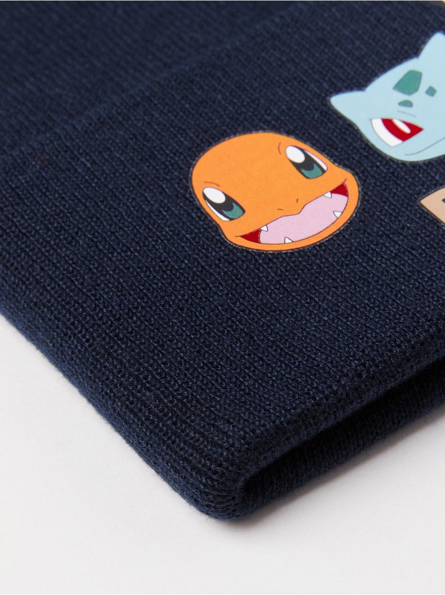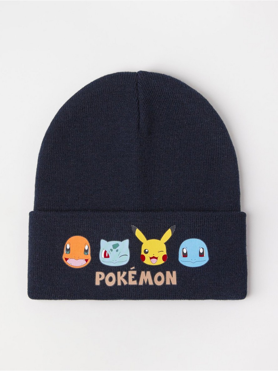 Udobna pletena kapa sa preklopljenim obodom i Pokémon motivom napred.