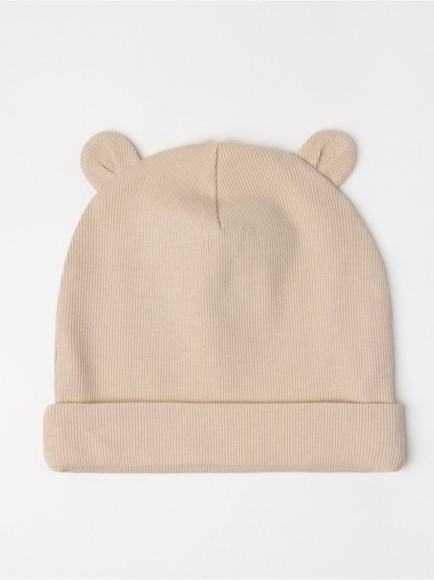 Rebrasta kapa sa prišivenim ušima i preklopivim rubom.