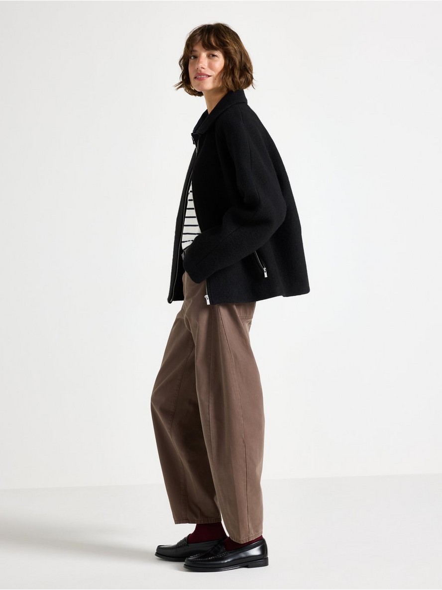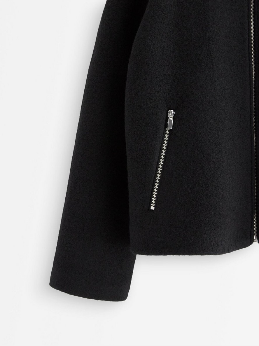 Jakna od mešavine vune sa opuštenom siluetom i rajsferšlusom napred.