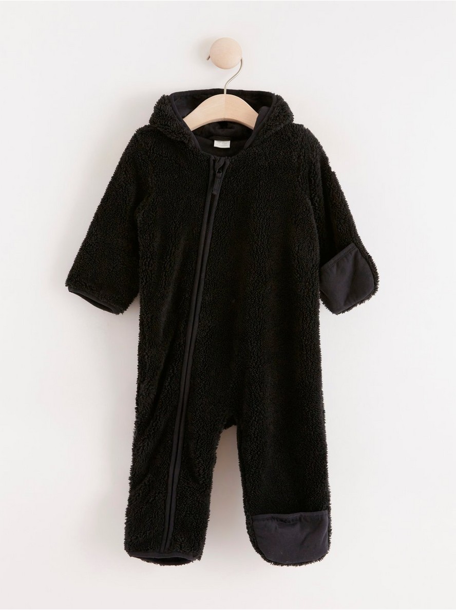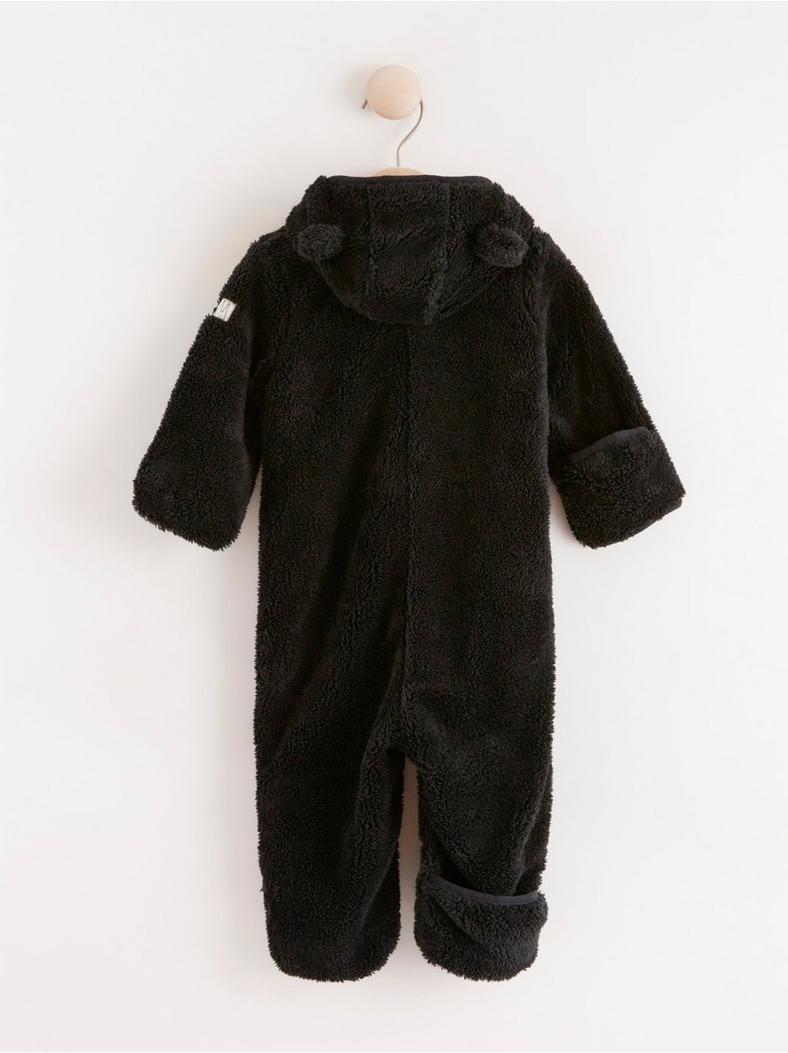 Veoma mekan i pufnast kombinezon za kolica od runa, napravljen od recikliranog poliestera. Male ušice na kapuljači čine ga možda još slađim.