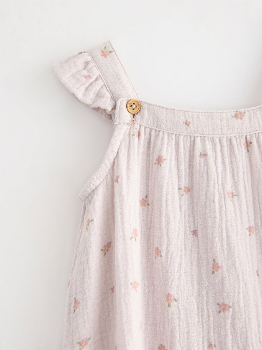 Kombinezon od mekog tkanog pamuka, širokog kroja i sa podesivim naramenicama.