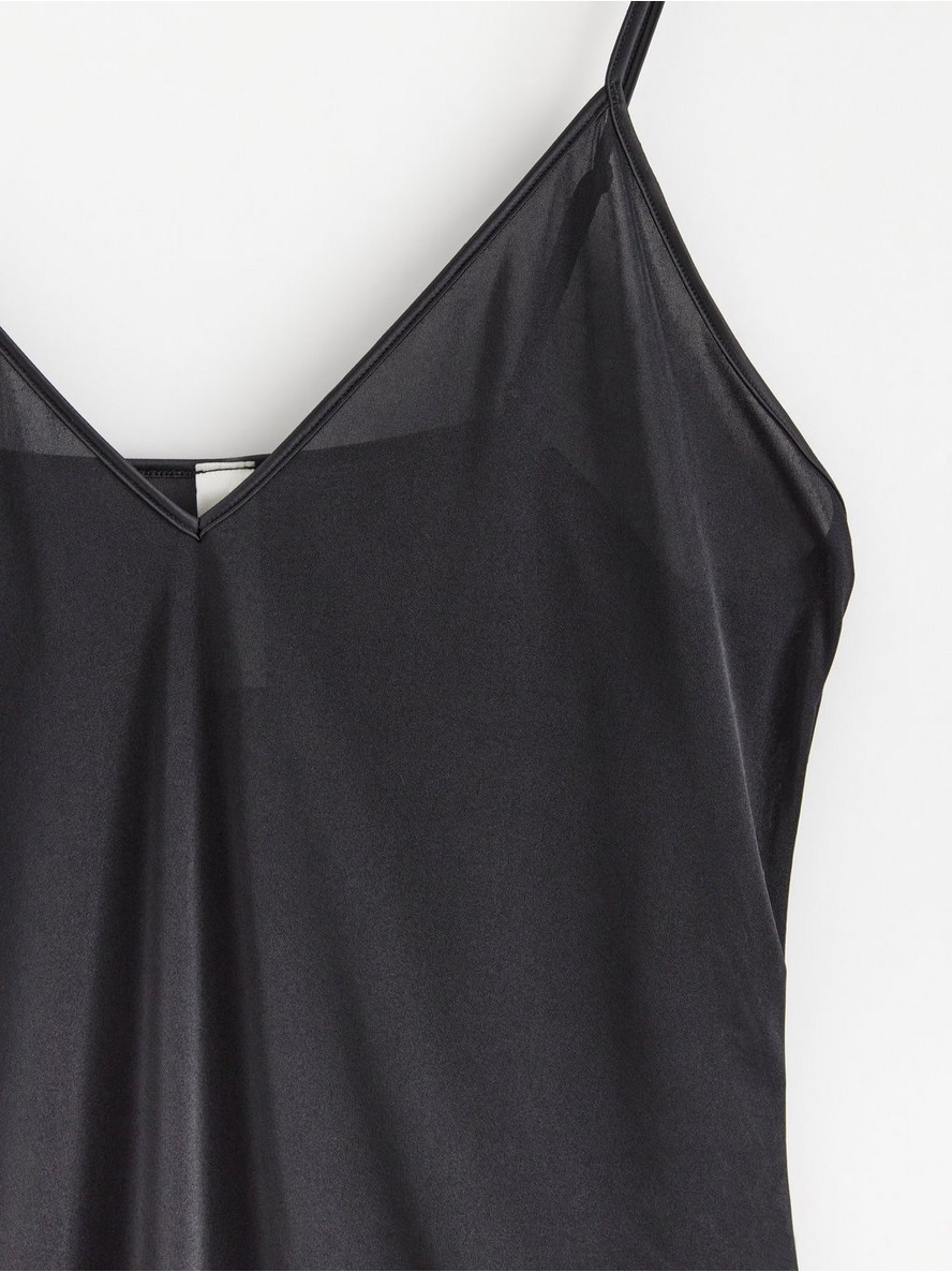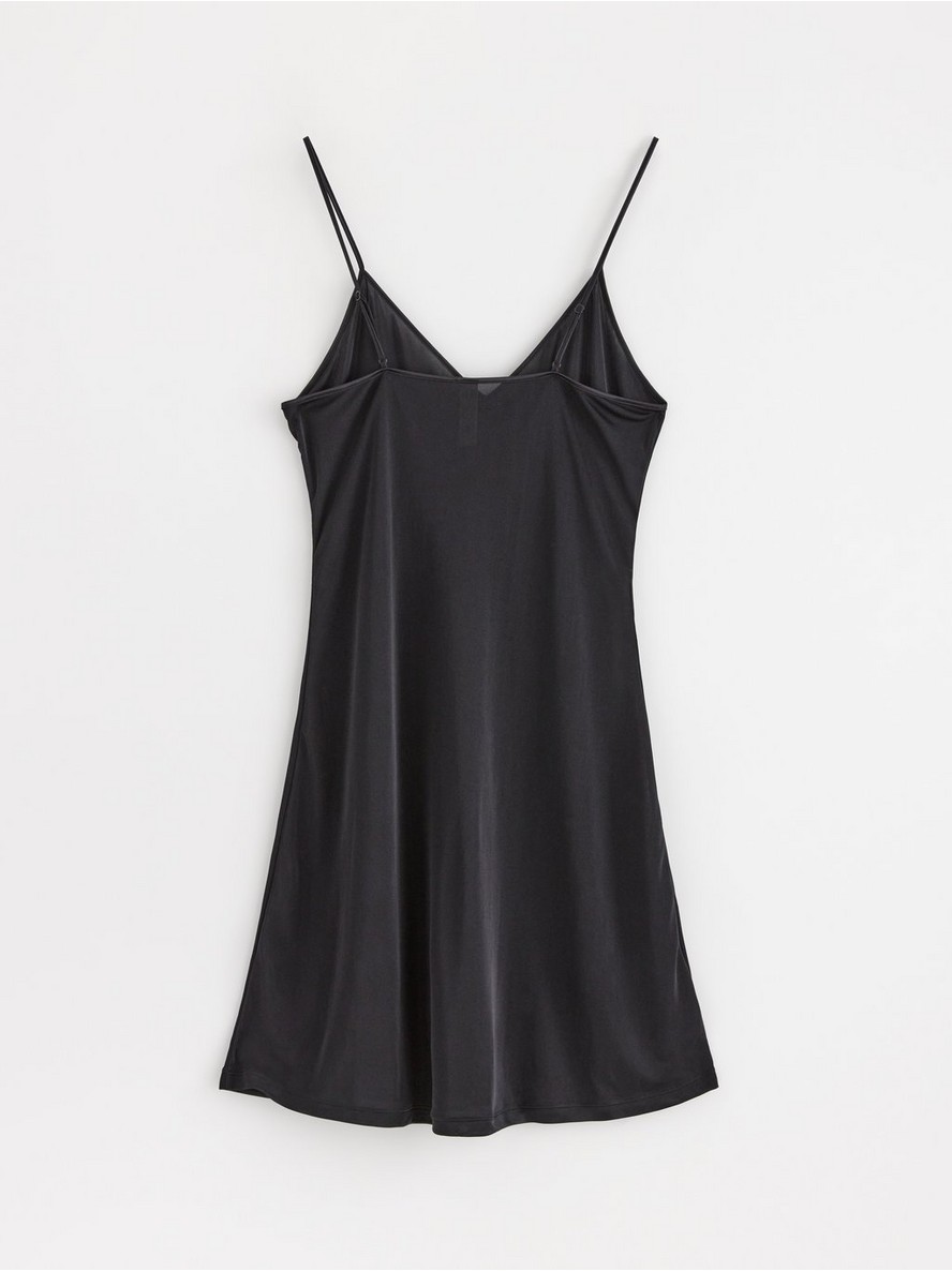 Haljina na bretele sa V-izrezom i tankim naramenicama.