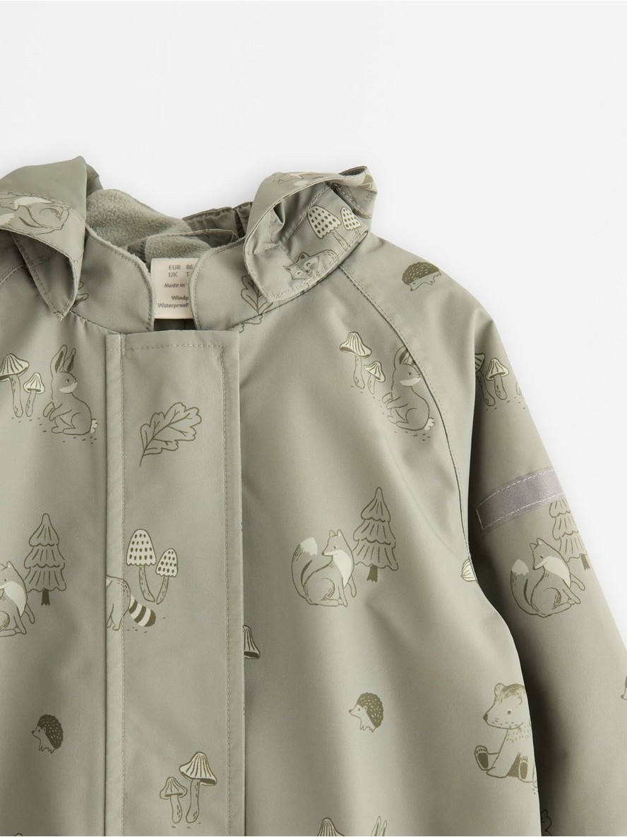 Vodootporan kombinezon sa kragnom obloženom flisom i odvojivom kapuljačom. Kombinezon ima vodootpornost (vodenog stuba) od 2000 mm.
