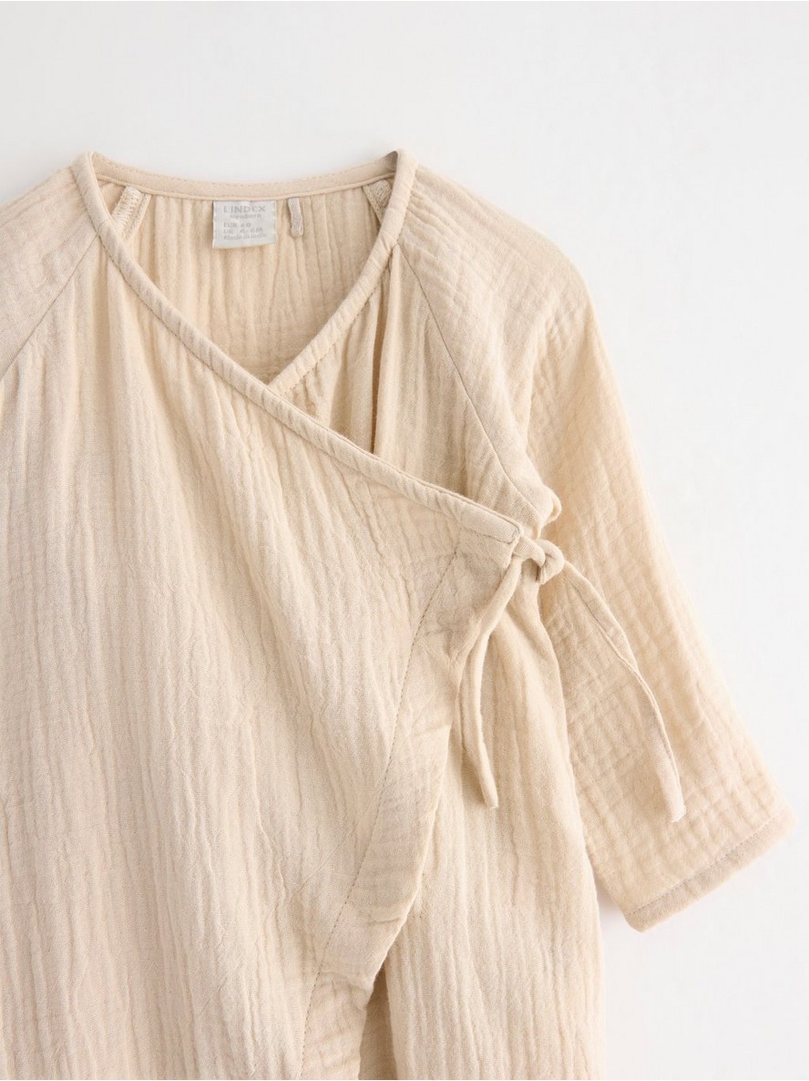 Preklopni kombinezon sa dugim rukavima od pamučne gaze, sa otvaranjem duž cele dužine.