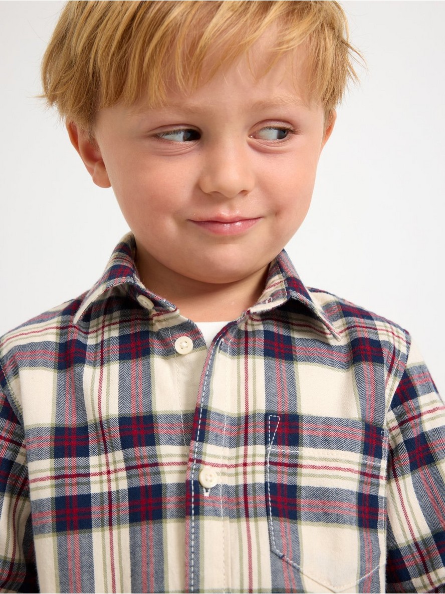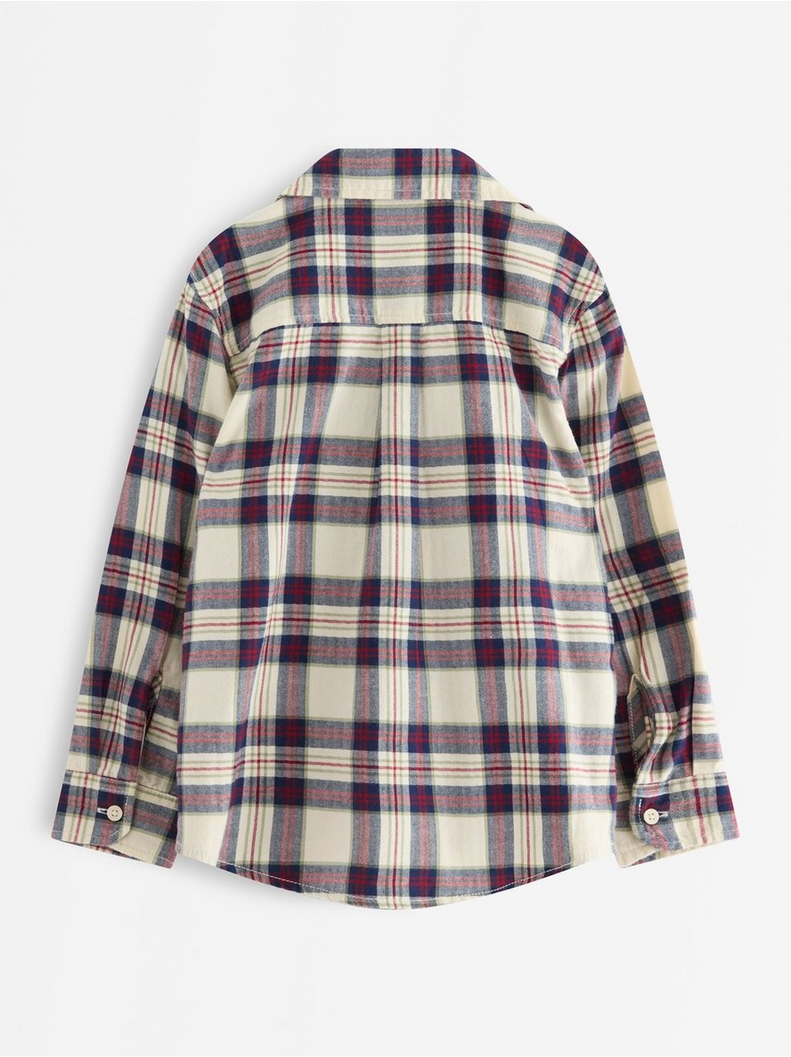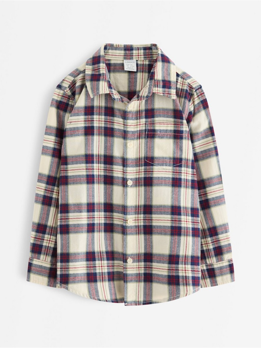 Mekana i udobna košulja u karo dezenu, sa dugim rukavima, klasičnim ovratnikom i zatvaranjem na dugmad.