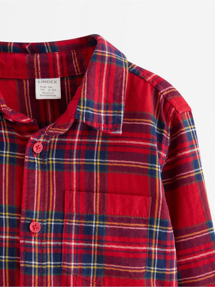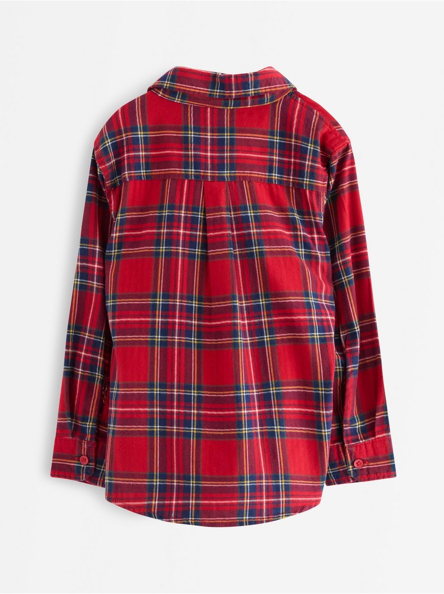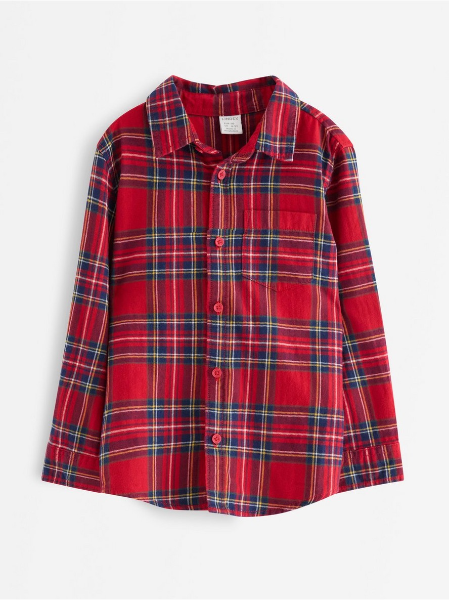 Mekana, karirana košulja sa dugim rukavima, klasičnom kragnom i kopčanjem na dugmad.