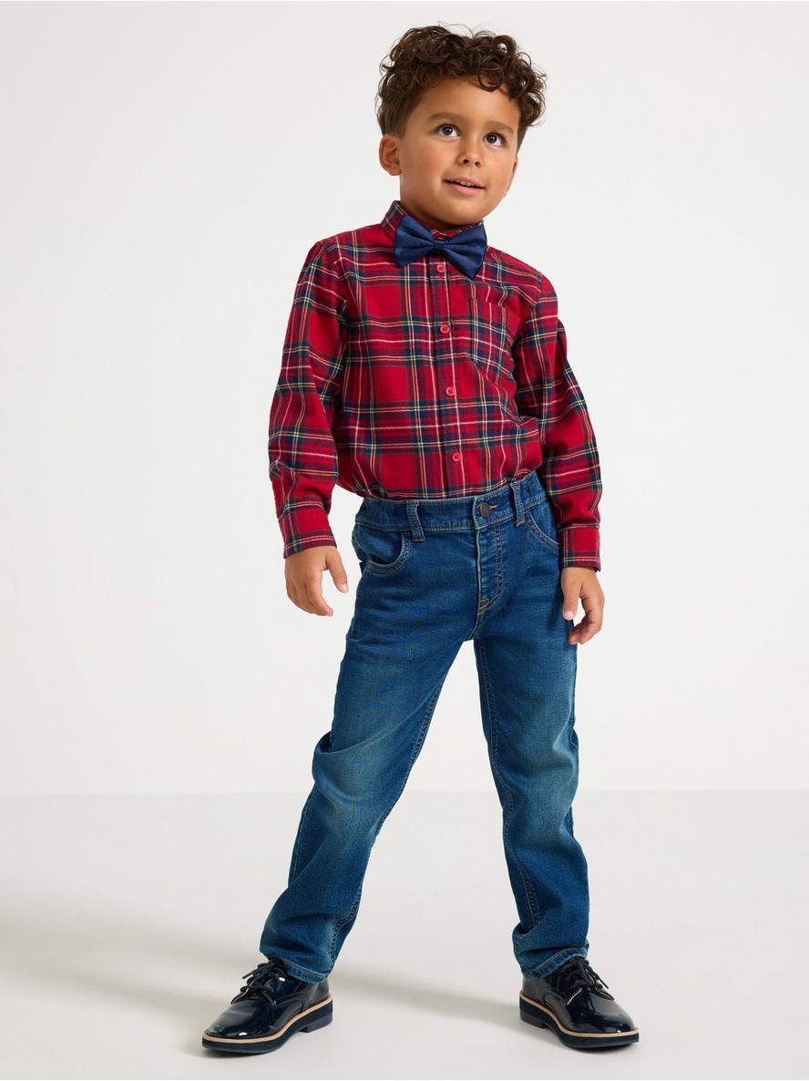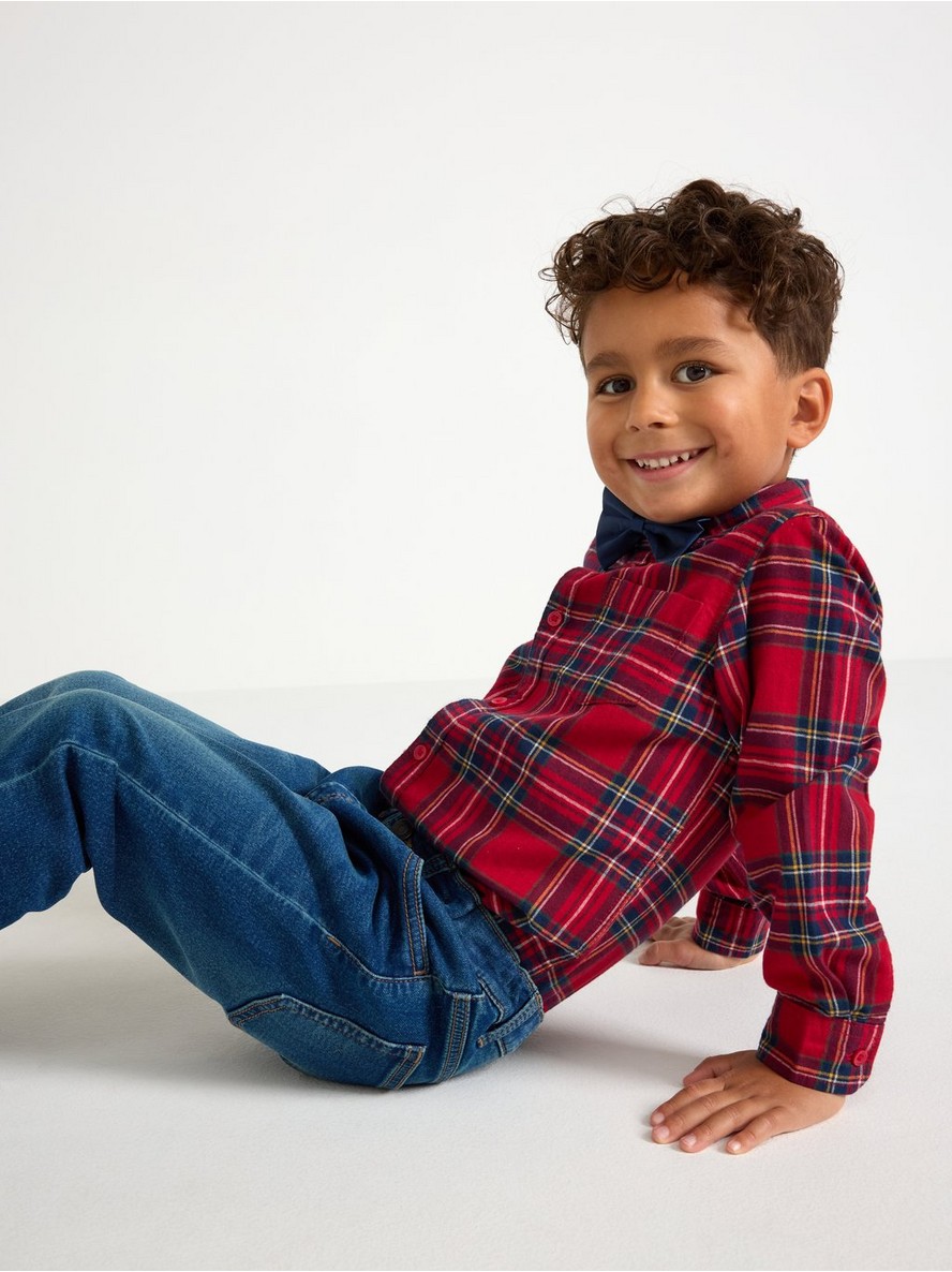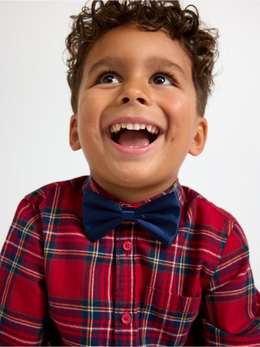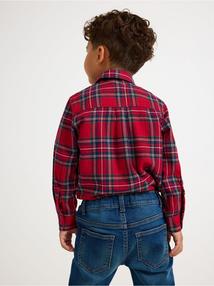 Mekana, karirana košulja sa dugim rukavima, klasičnom kragnom i kopčanjem na dugmad.