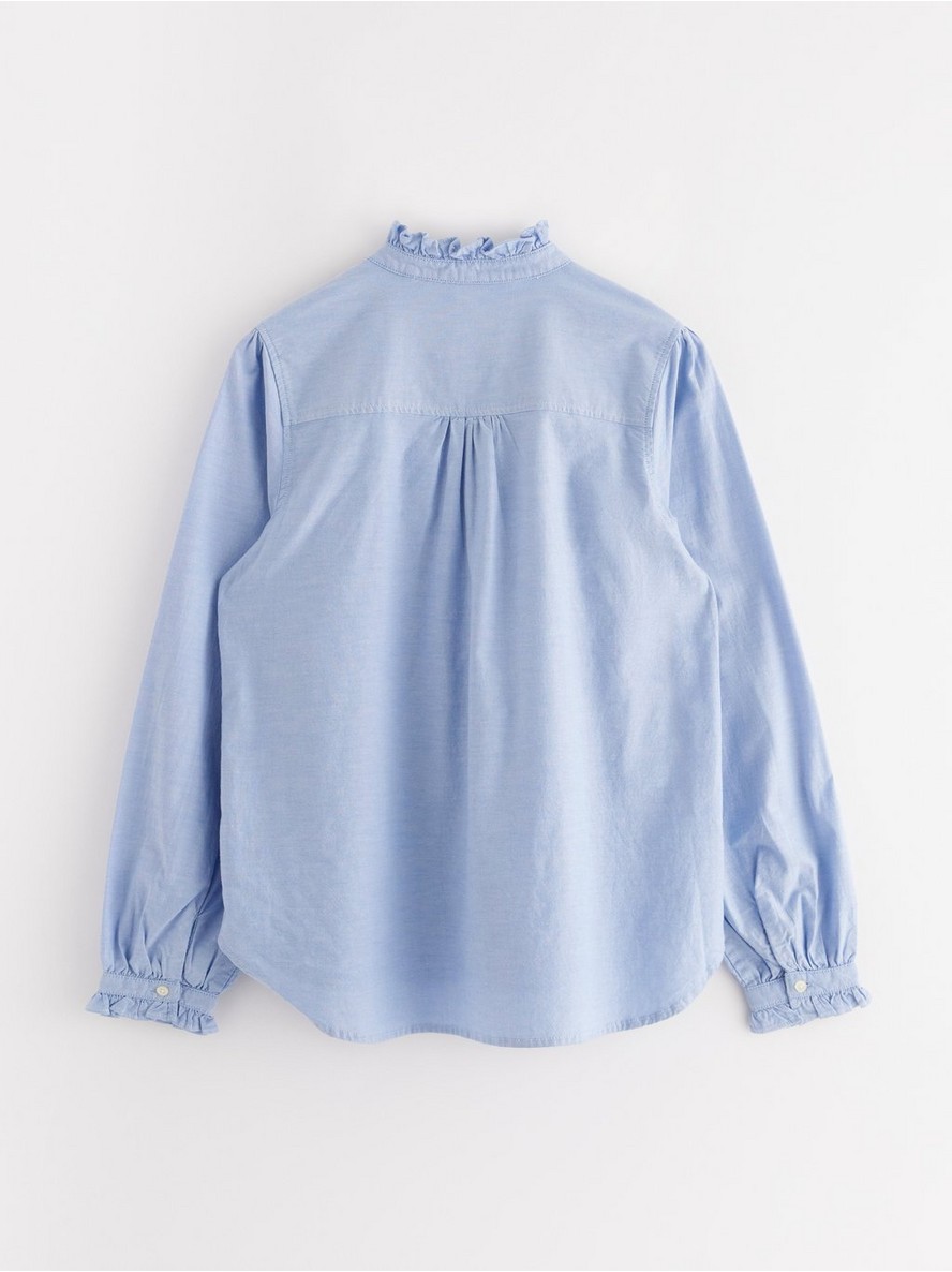 Šik košulja sa naboranim visokim ovratnikom, dugim rukavima i ležernim krojem.