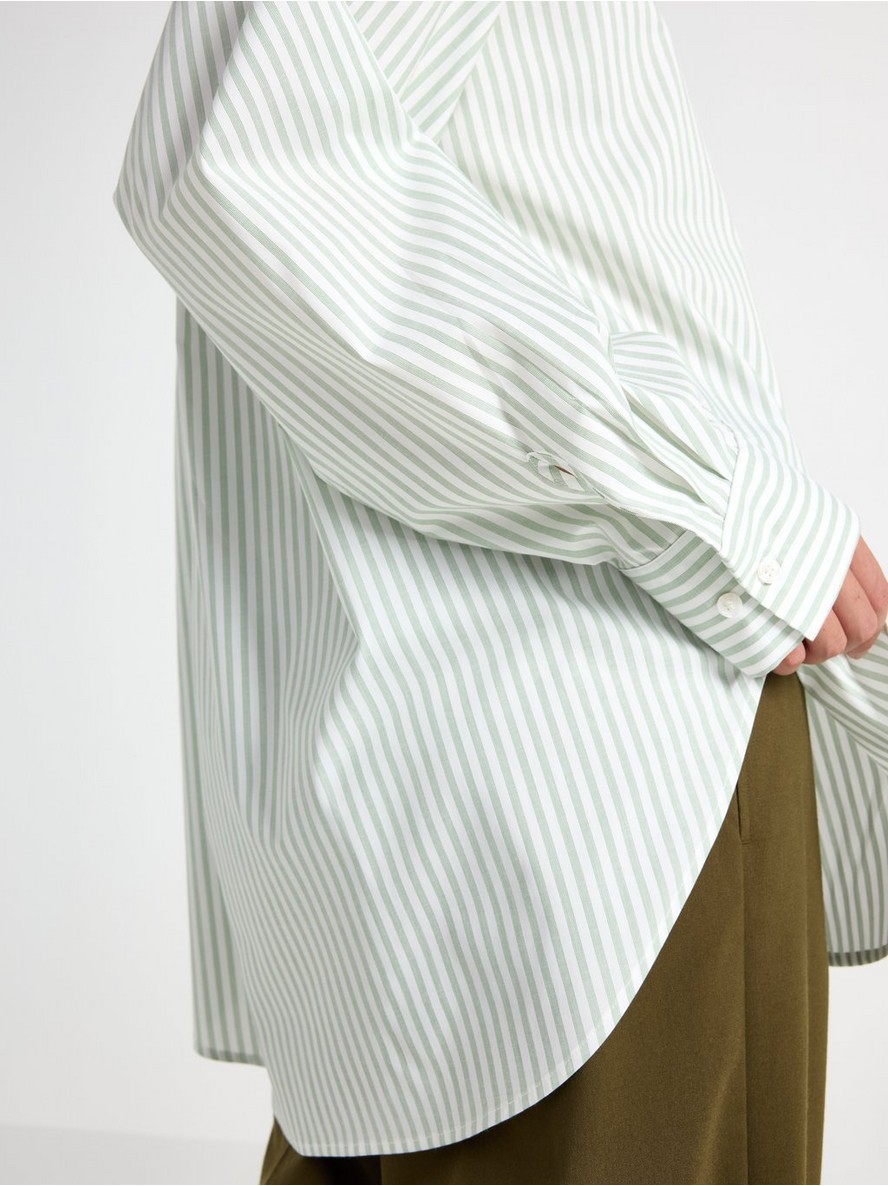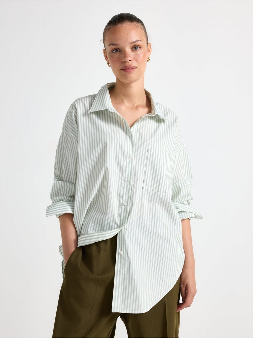 Oversize košulja sa dugim rukavima i klasičnim okovratnikom.