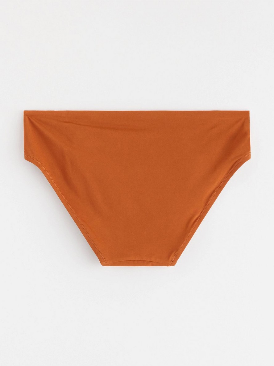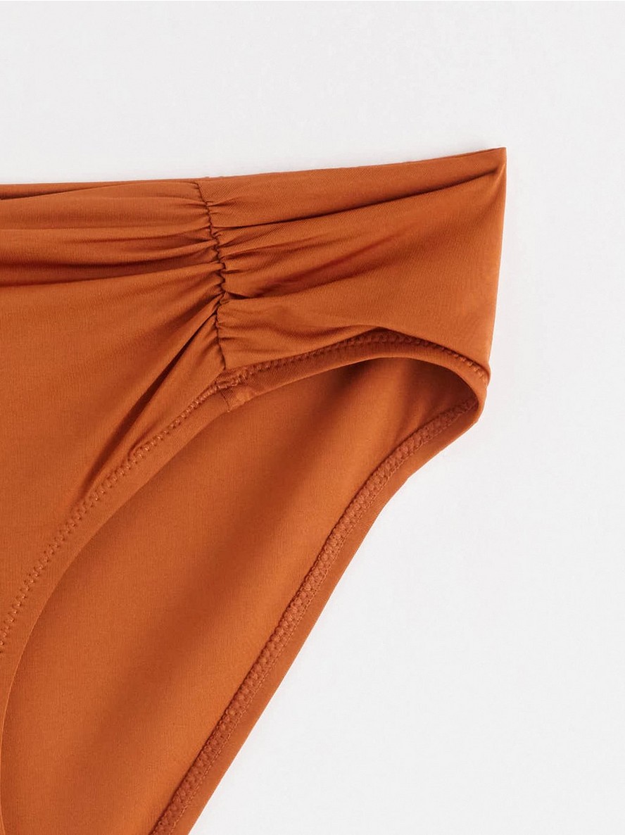 Donji deo bikinija sa srednjim strukom i nabranim detaljima.