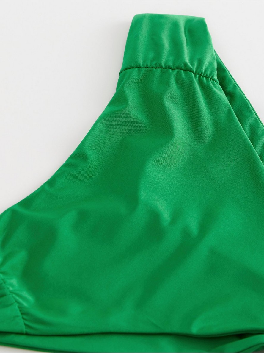 Donji deo bikinija sa visokim izrezom nogu i naboranim detaljima.