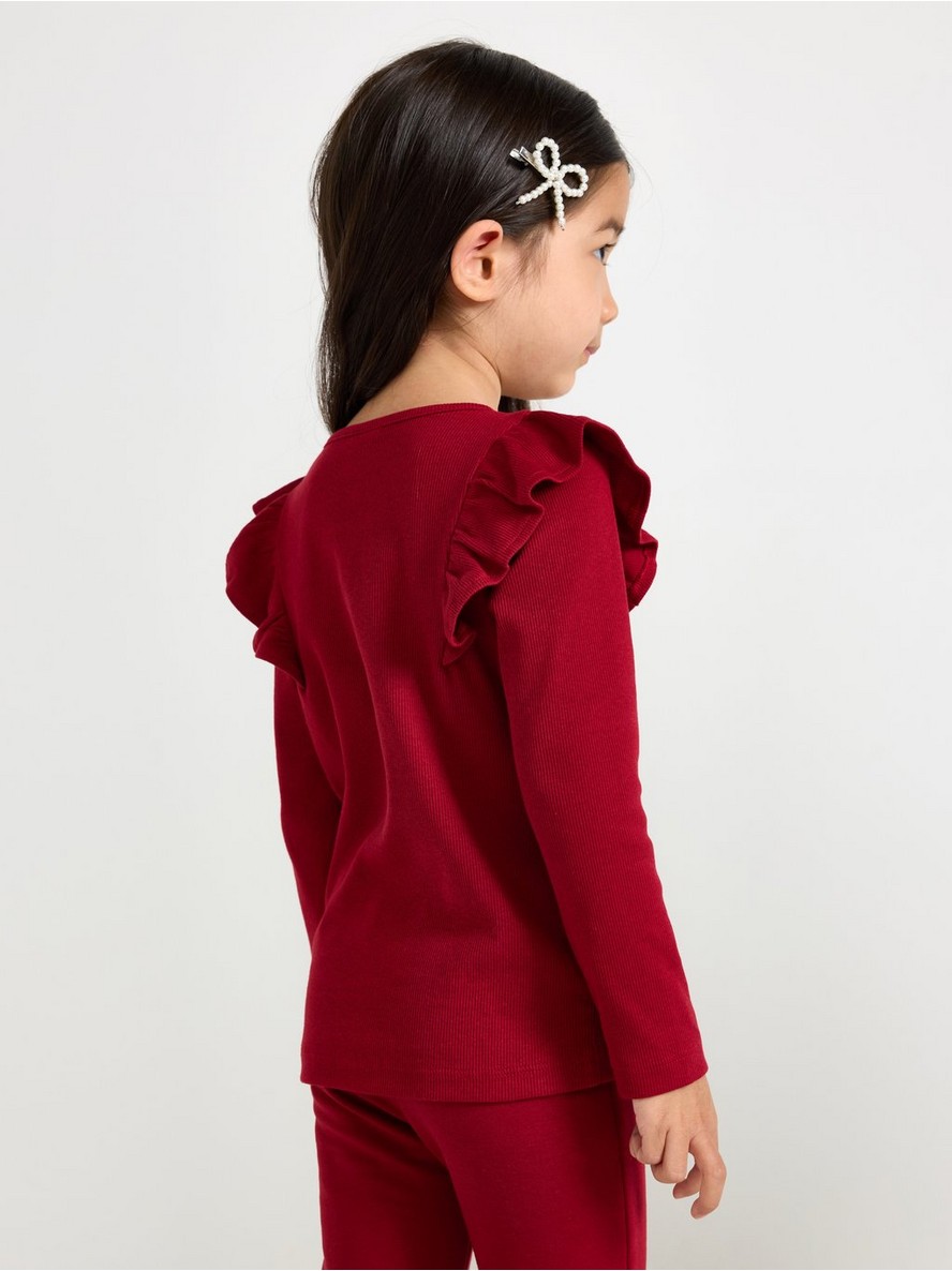 Top sa dugim rukavima od rebrastog pamučnog džerseja, sa volanom na ramenima.