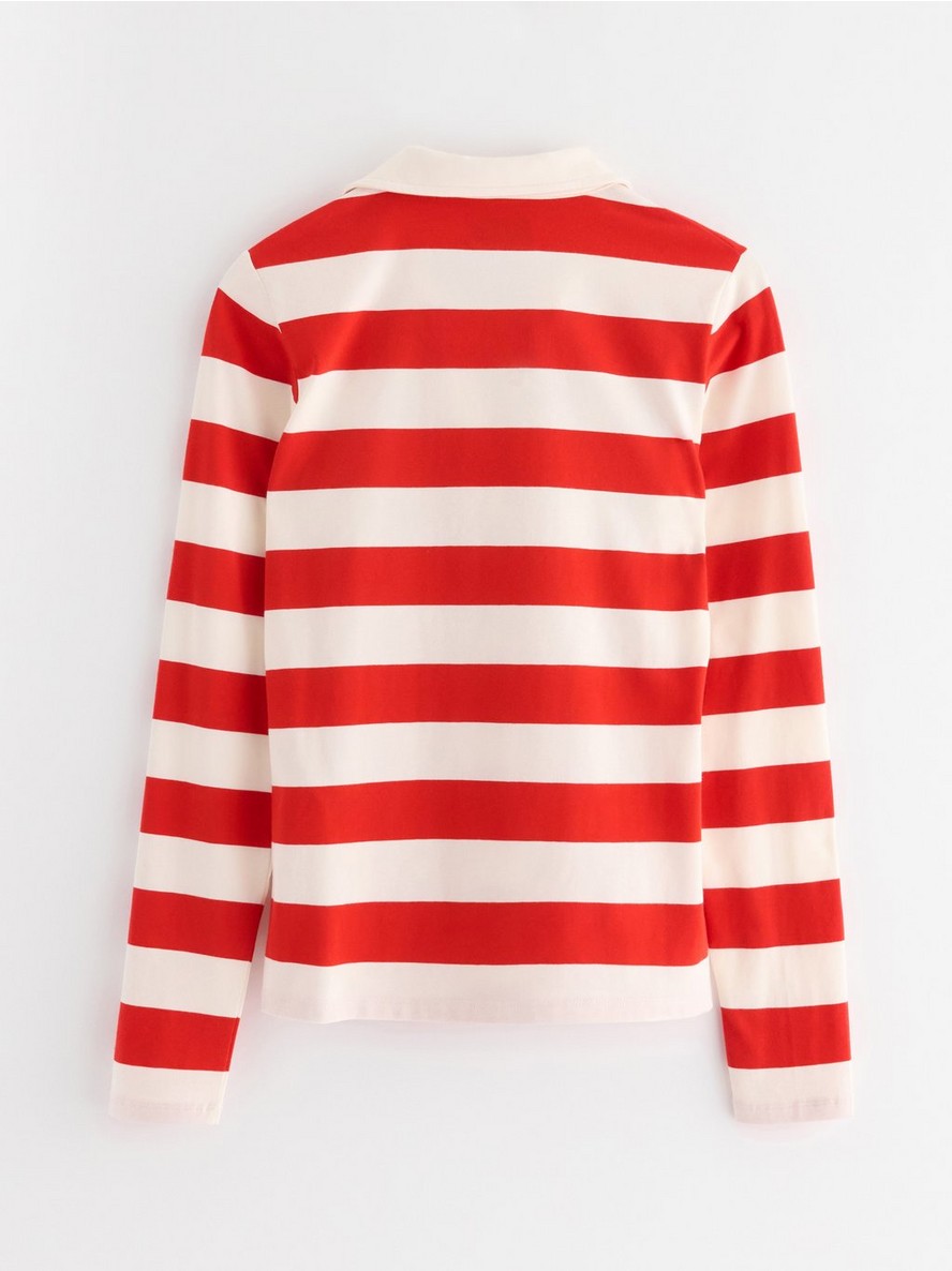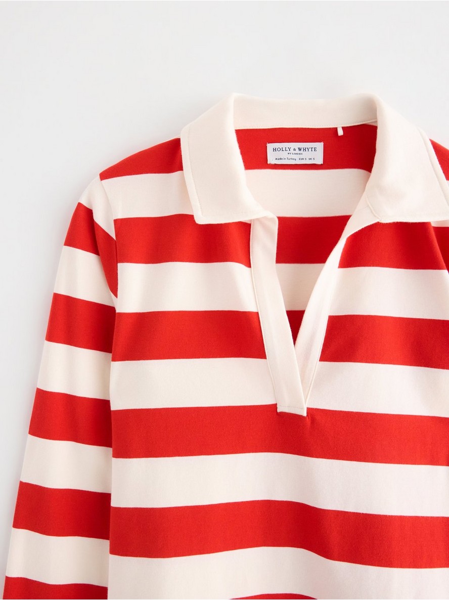 Top od džerseja sa V-izrezom i košuljskim ovratnikom.