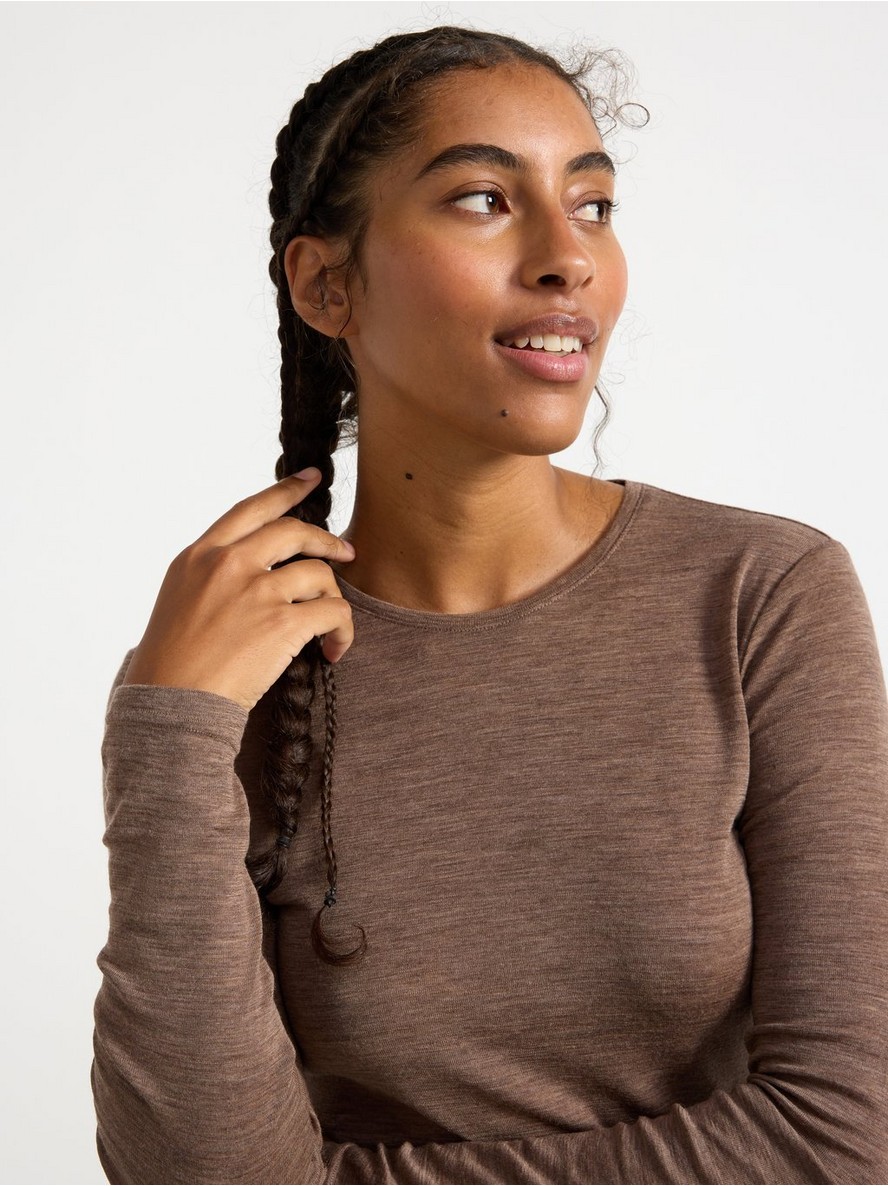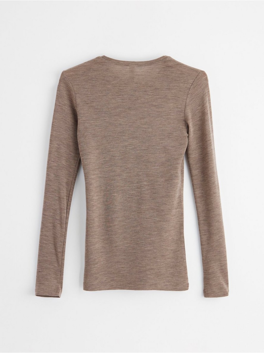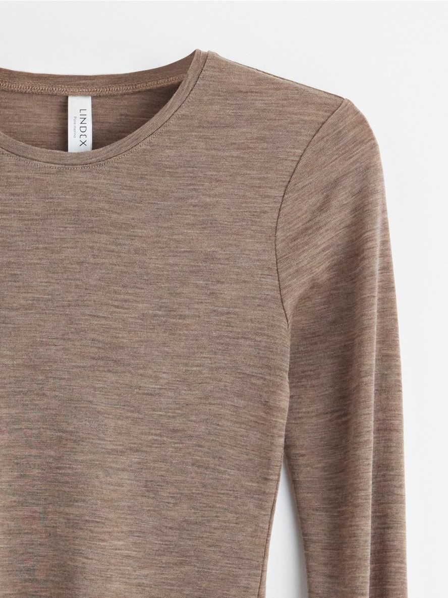 Top sa dugim rukavima od merino vune, namenjen kao osnovni sloj u hladnijim danima. Vrhunski kvalitet. Ovaj komad je vrhunskog kvaliteta, napravljen od čiste merino vune. Merino vuna je mekana i lagana tkanina koja vas greje i koju ćete dugo voleti. Ako negujete merino vunu, dobićete bezvremenski komad koji ćete nositi iznova i iznova.