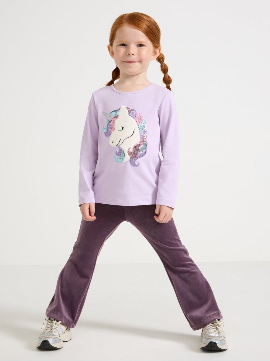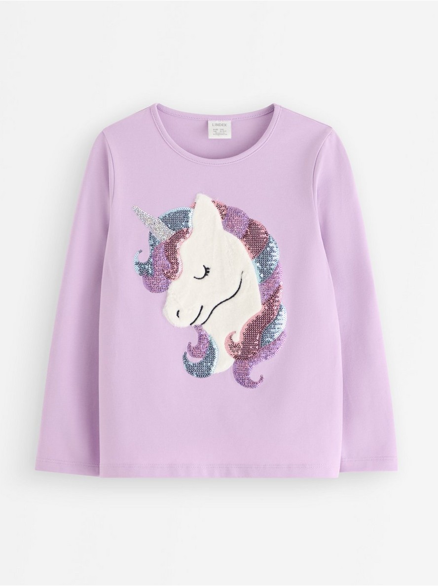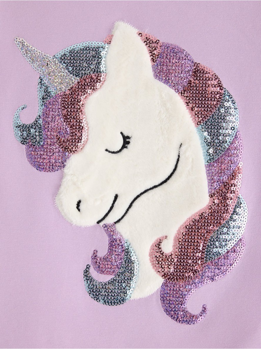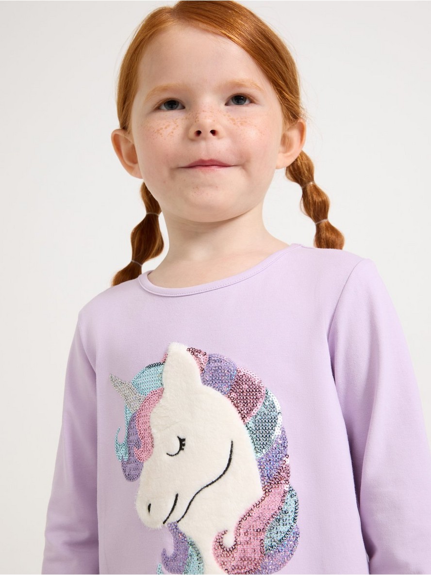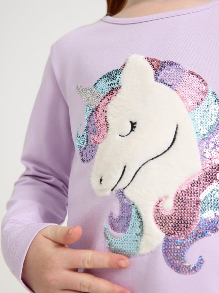 Majica sa dugim rukavima od mekog pamuka sa šljokicama i aplikacijom na prednjem delu.