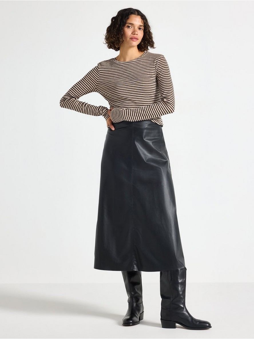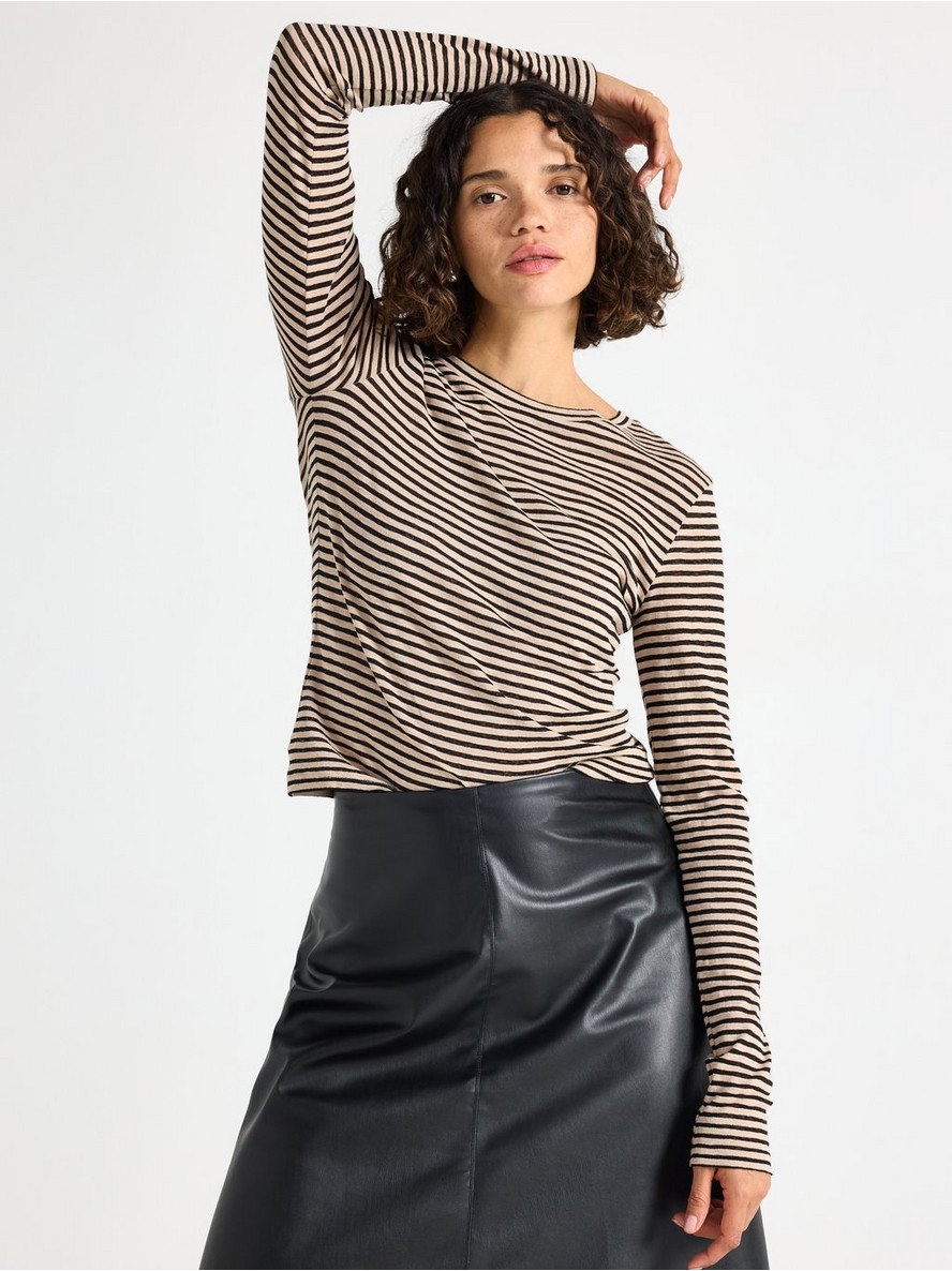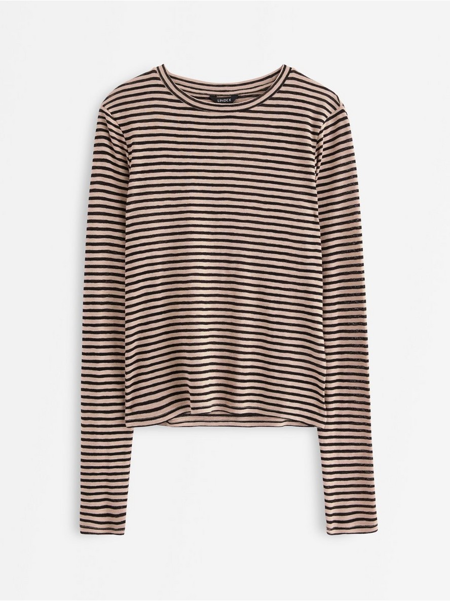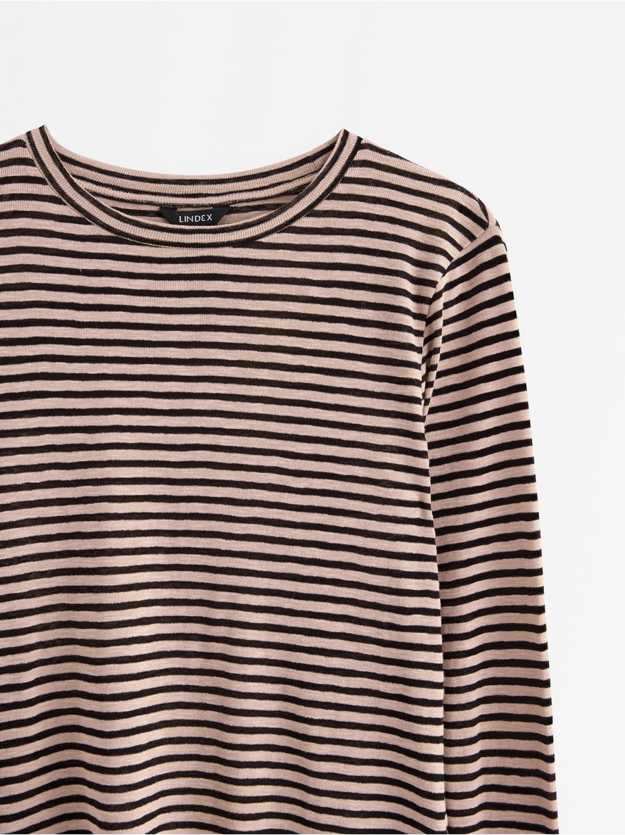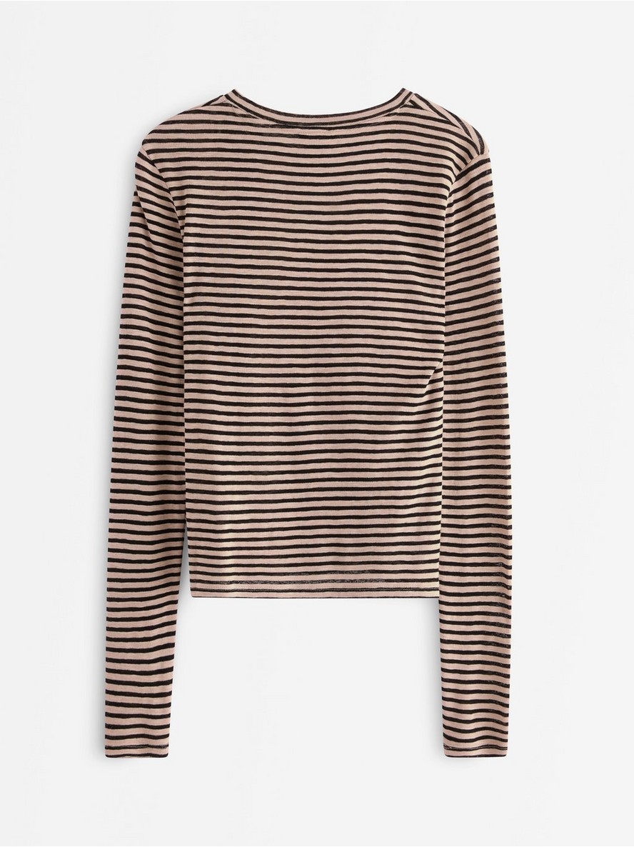 Mekana majica od džerseja sa dugim rukavima i okruglim izrezom. Tkanina je poluprovidna.