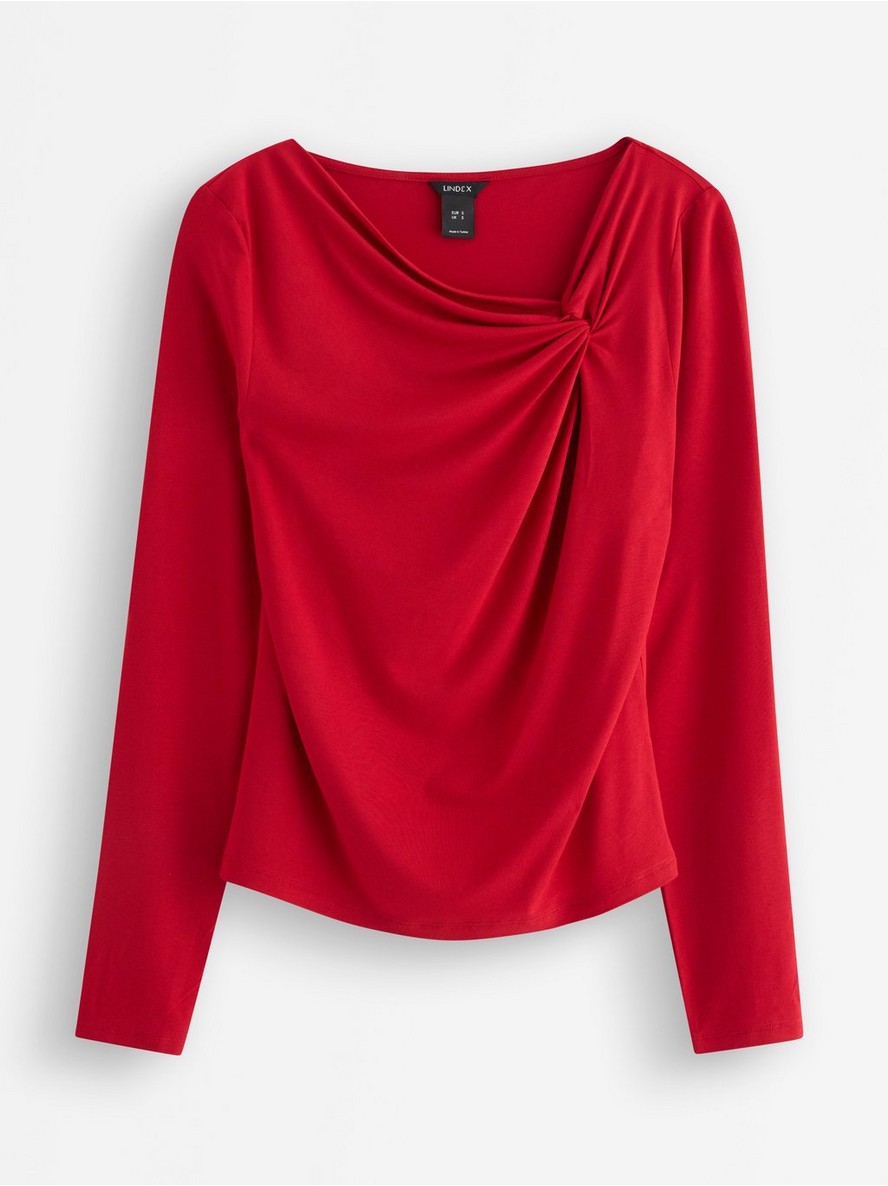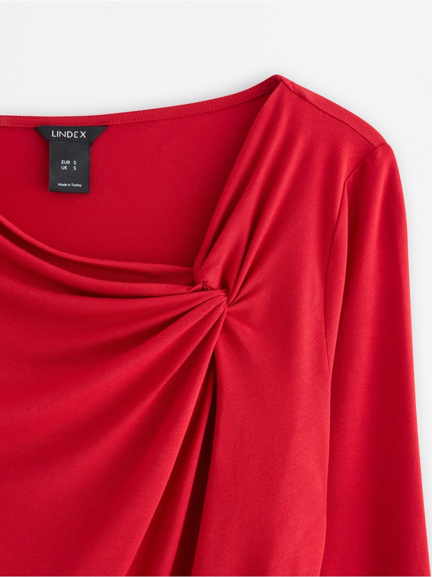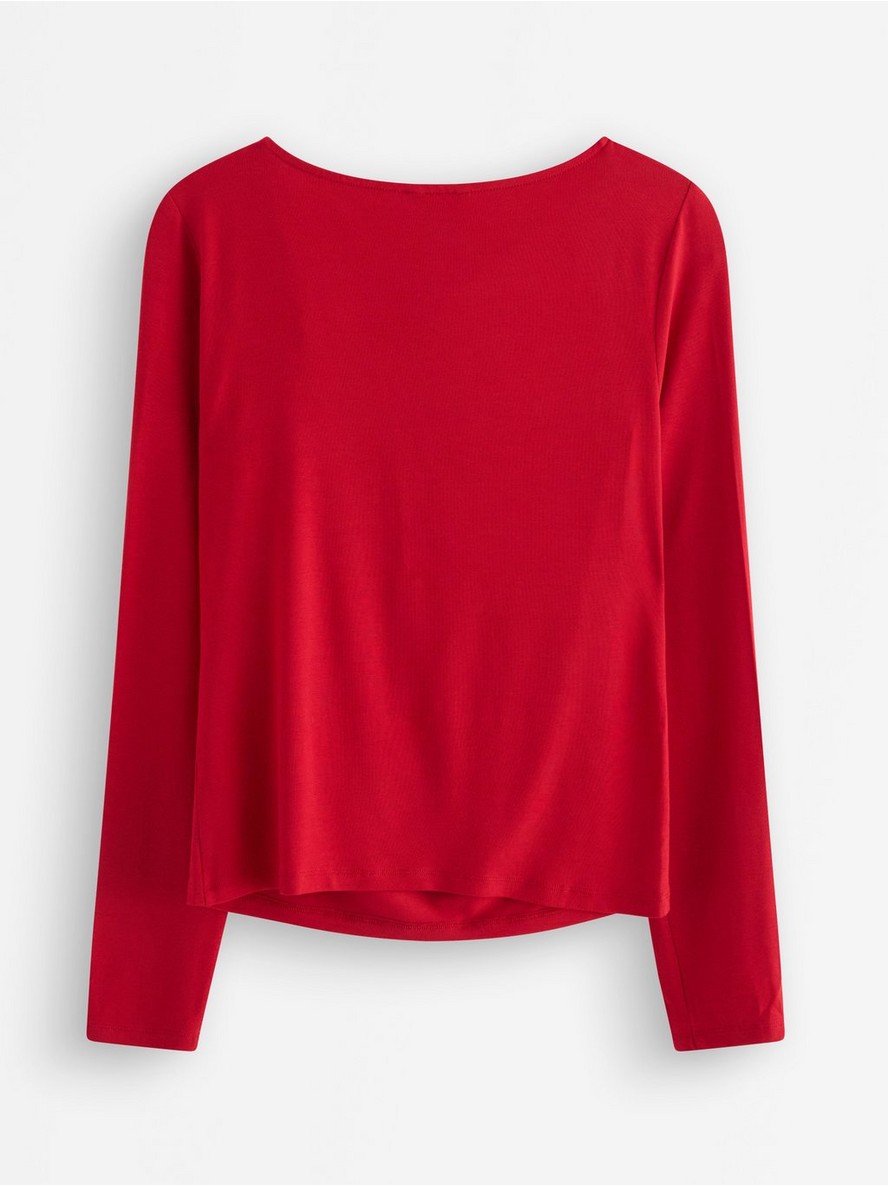 Mekan top dugih rukava sa detaljem čvora na izrezu.