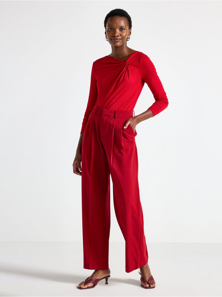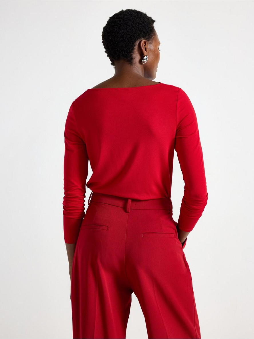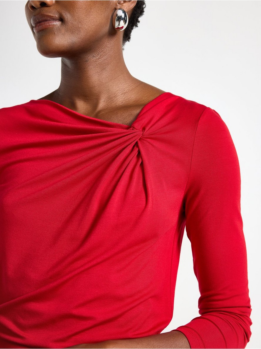 Mekan top dugih rukava sa detaljem čvora na izrezu.