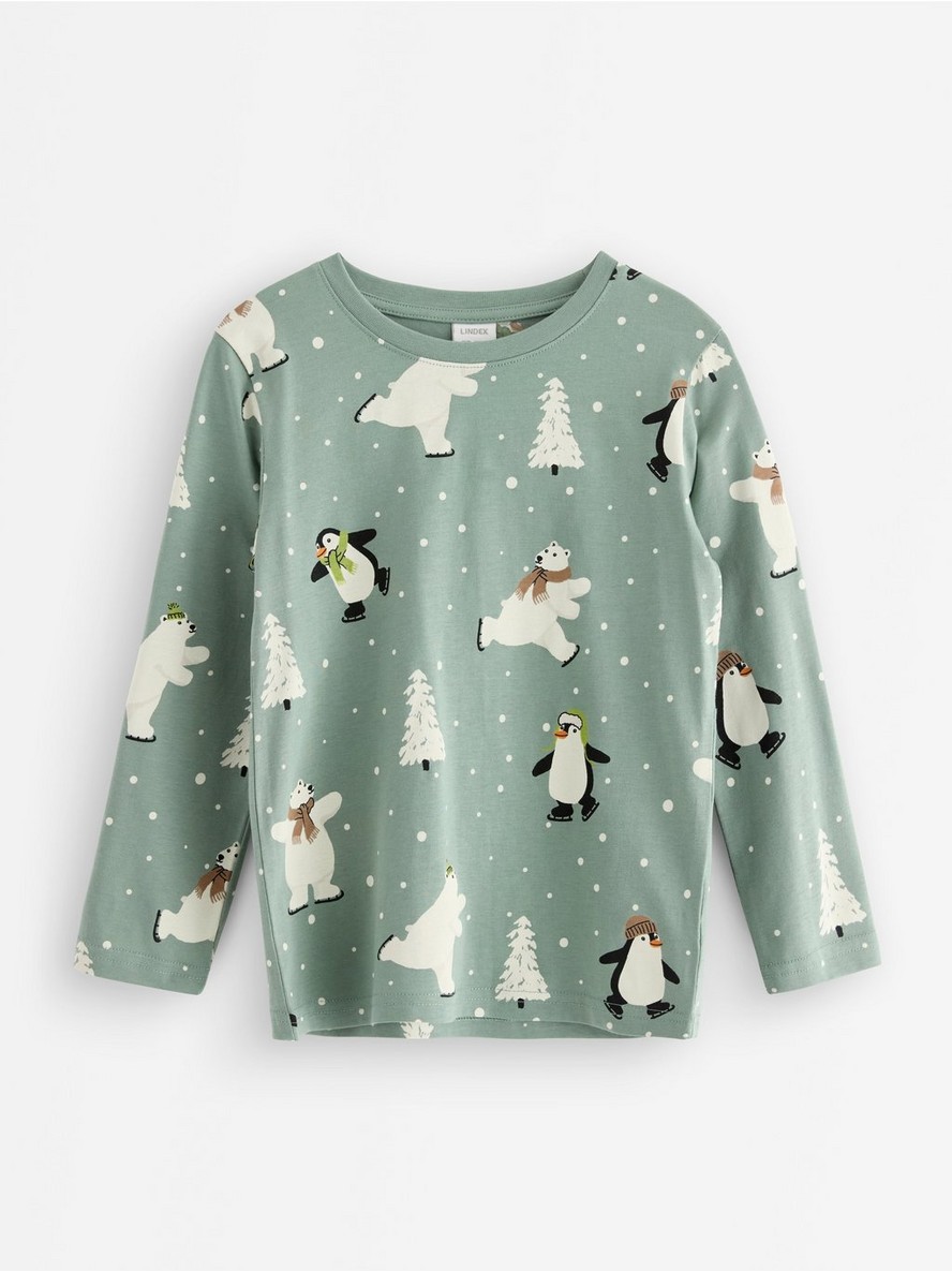 Majica od džerseja dugih rukava sa zimskim motivom po celoj površini.