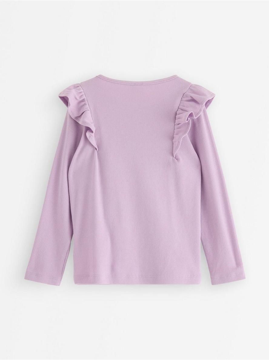 Majica dugih rukava od rebrastog pamučnog džerseja sa ukrasnim volanima na ramenima.