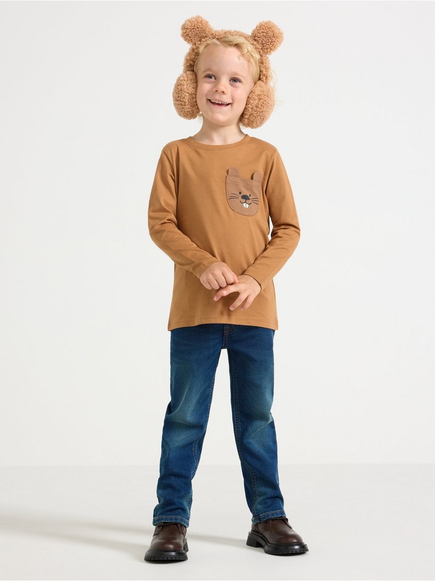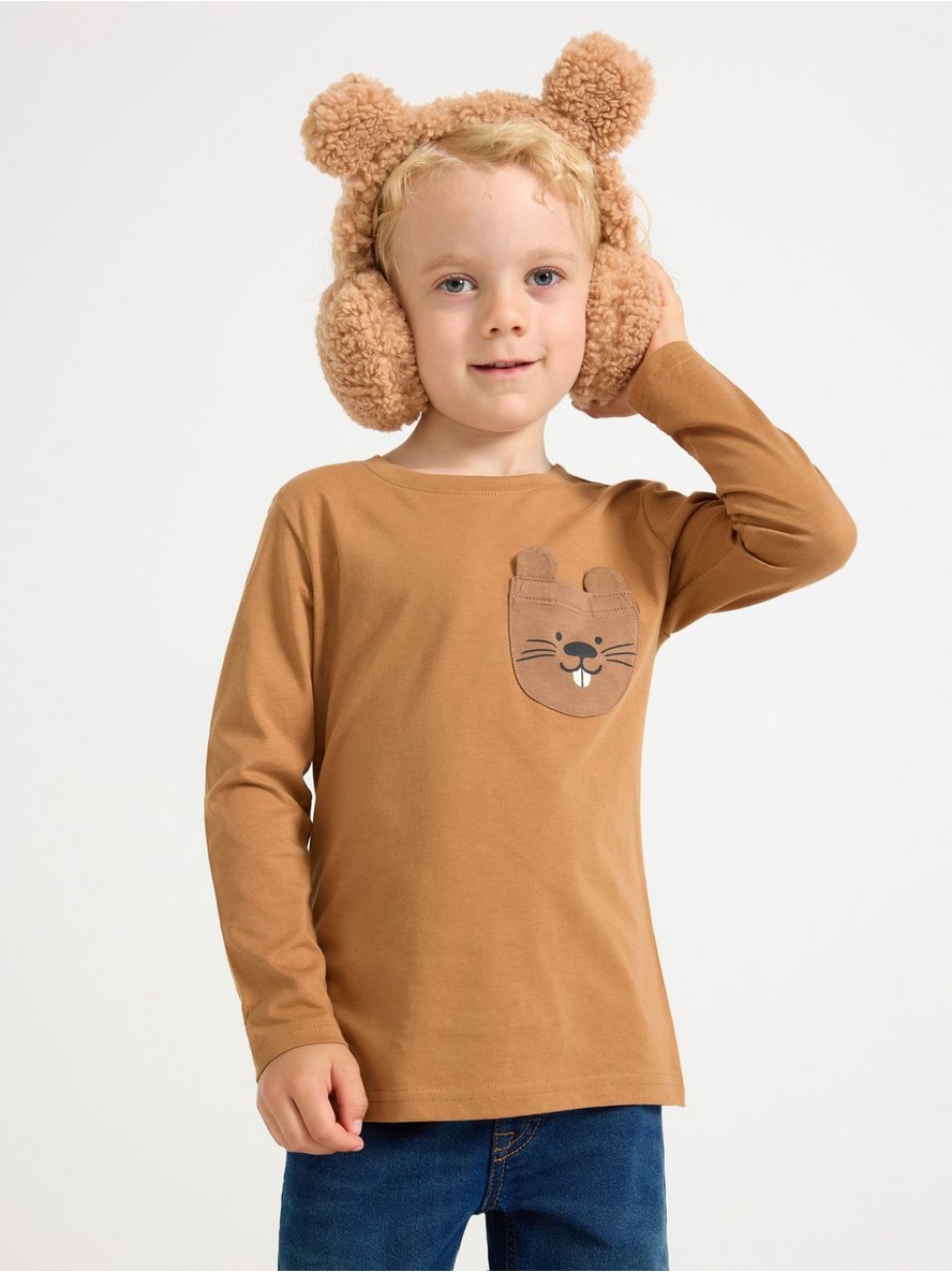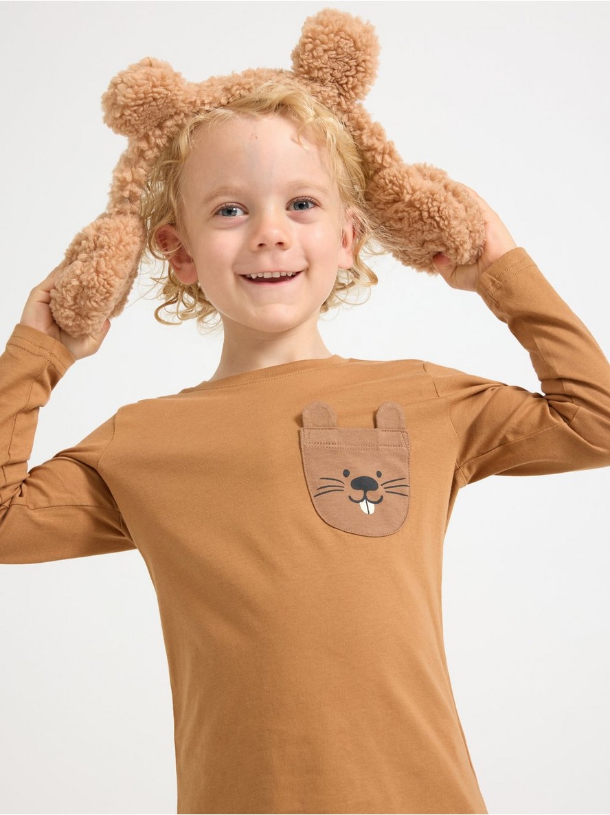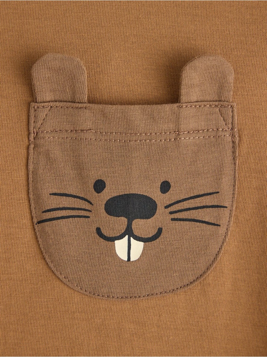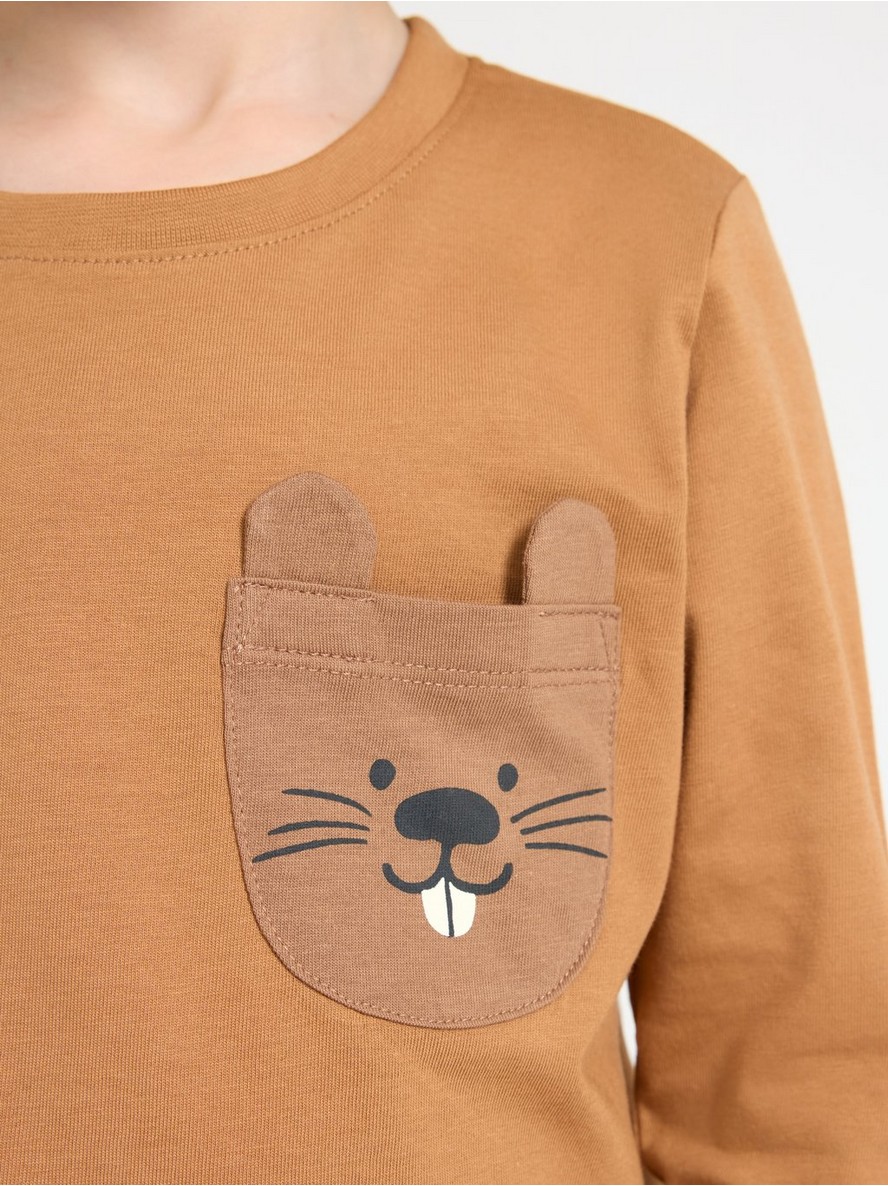 Top sa dugim rukavima od mekanog pamuka, sa simpatičnim džepićem na grudima.
