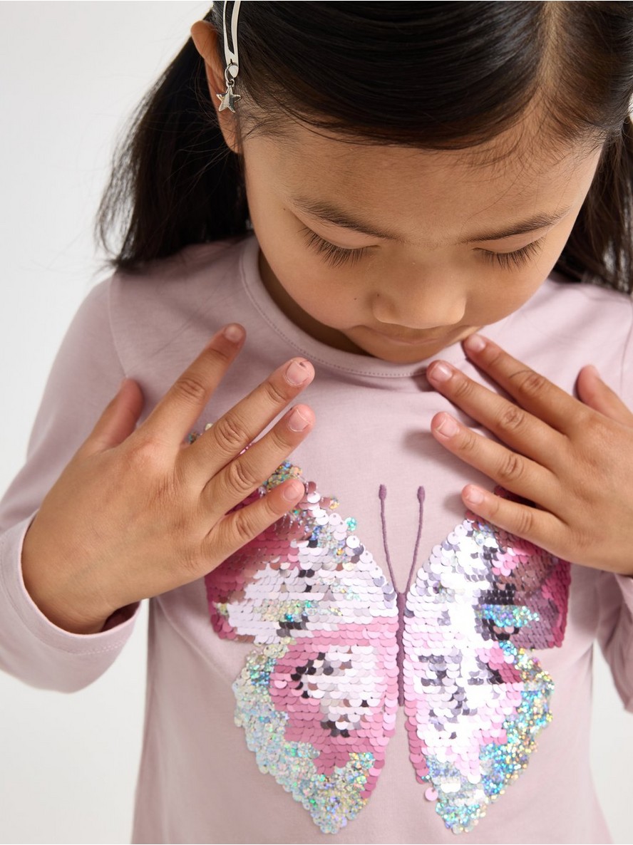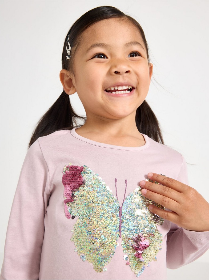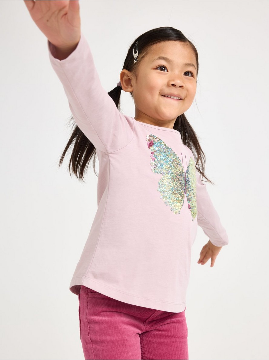 Majica dugih rukava od mekog pamučnog džerseja sa motivom od preokretnih šljokica na prednjoj strani.