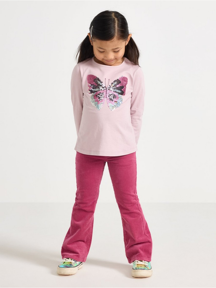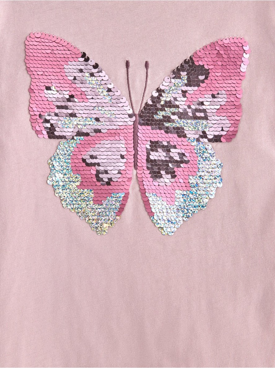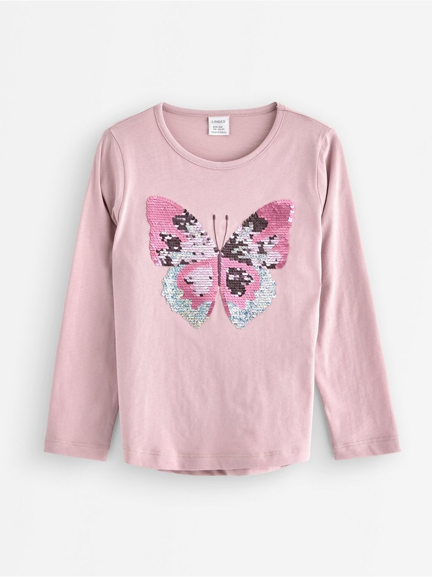 Majica dugih rukava od mekog pamučnog džerseja sa motivom od preokretnih šljokica na prednjoj strani.