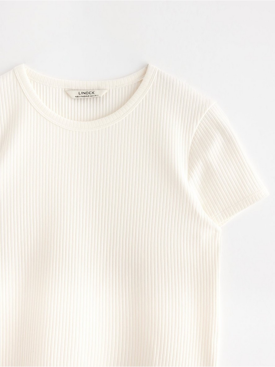Rebrasti top sa kratkim rukavima i pristajućom siluetom.
