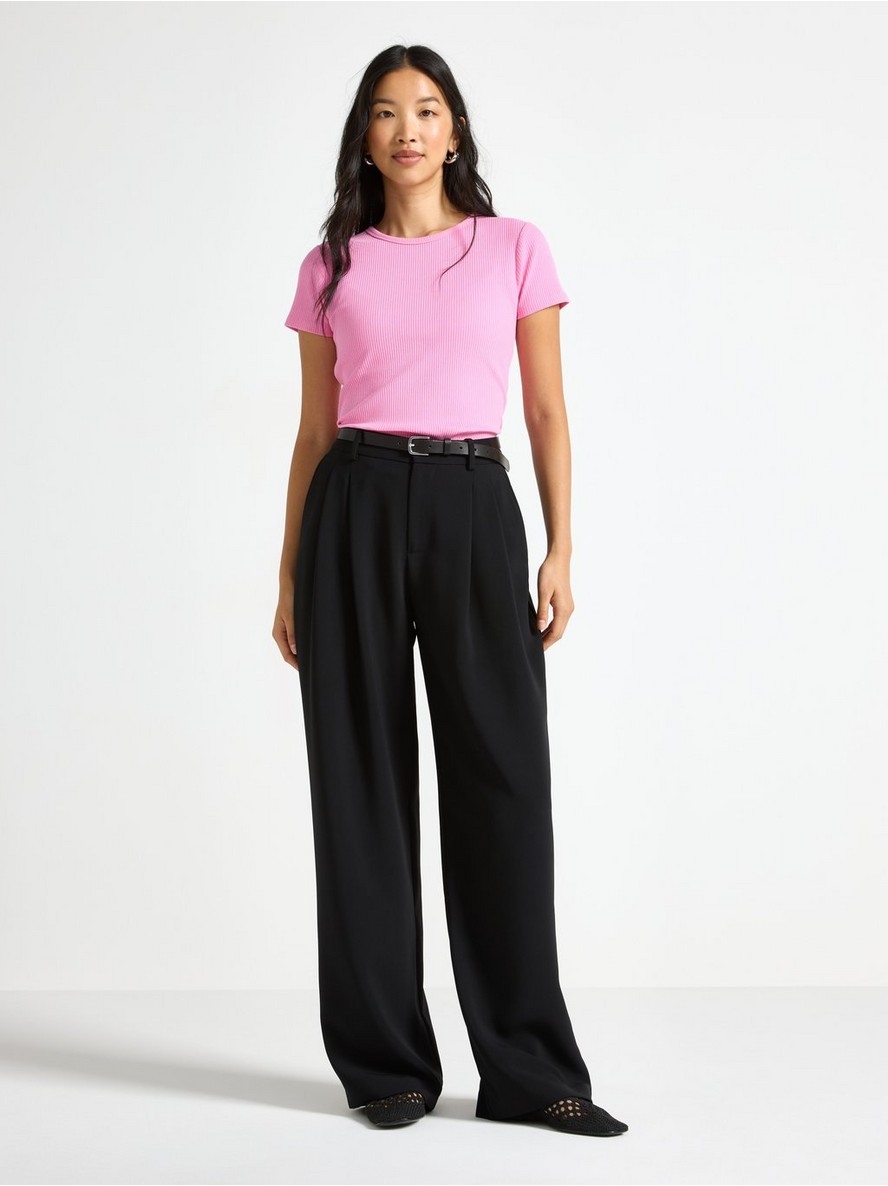 Rebrasti top sa kratkim rukavima i siluetom koja prati liniju tela.