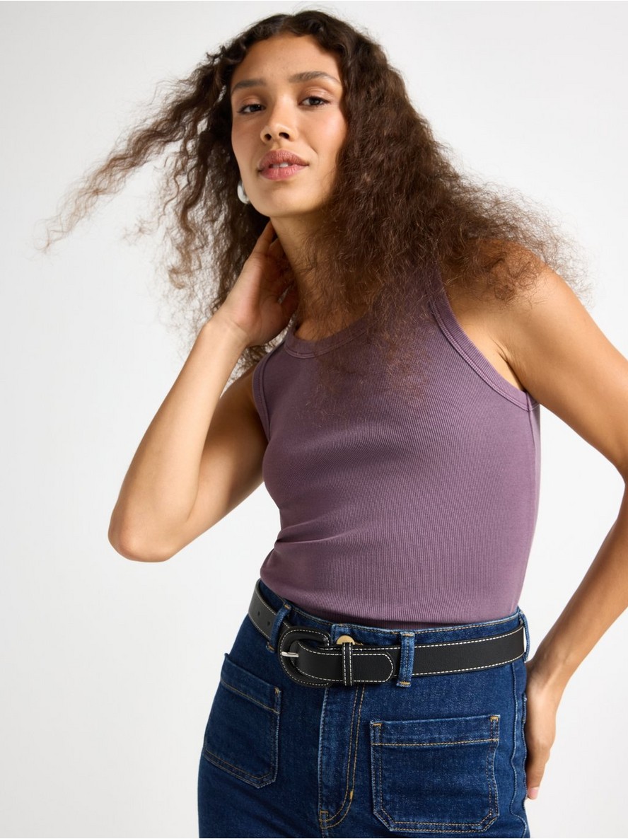 Top na bretele od mekanog i rastegljivog pamuka, prijanjajućeg kroja i ispranog izgleda.