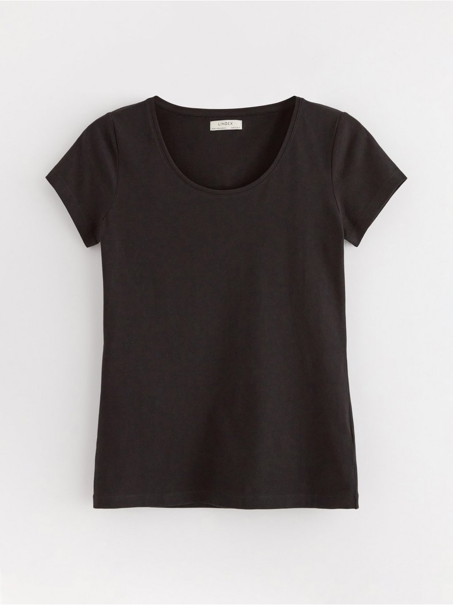Meka, rastegljiva majica izrađena od mešavine recikliranog pamuka.