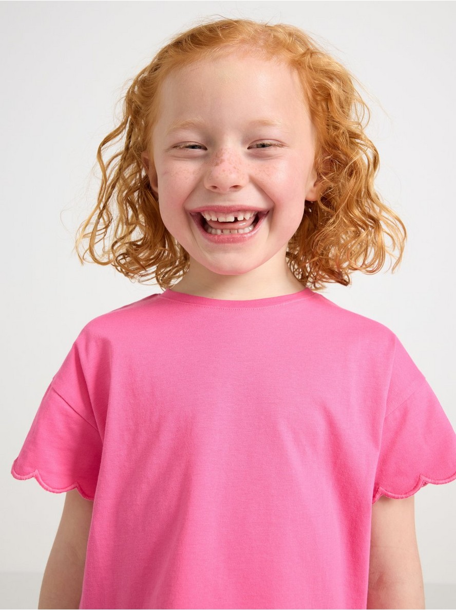 Top od mekanog pamuka sa valovitim rubom i kratkim rukavima sa valovitim ivicama.