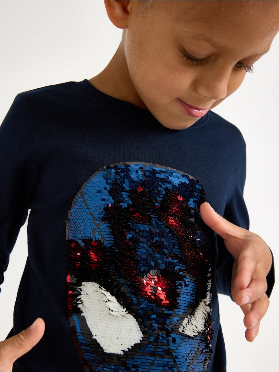 Top dugih rukava od mekanog pamučnog džerseja sa reverzibilnim motivom od šljokica Spider-Mana na prednjoj strani.