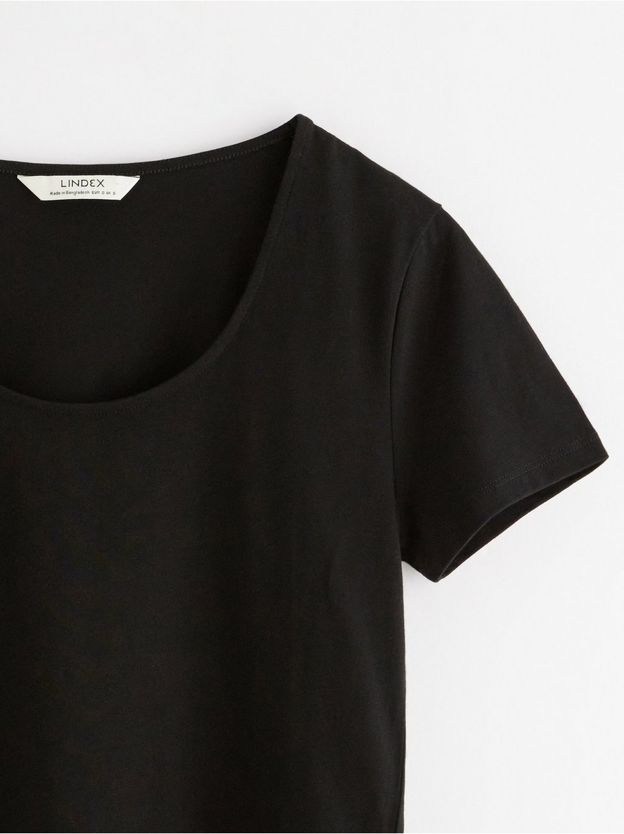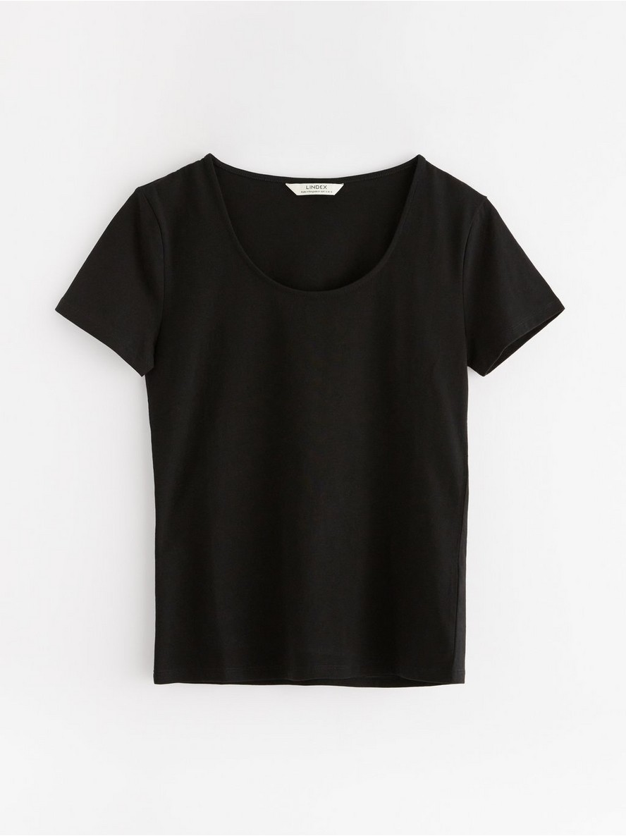 Osnovna majica od mekanog i rastegljivog pamuka sa kratkim rukavima i okruglim izrezom.