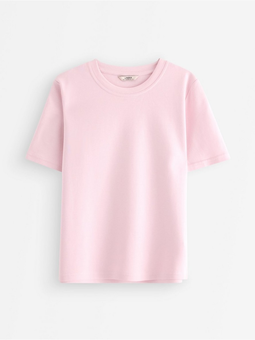 Majica kratkih rukava izrađena od nešto debljeg pamučnog džersija, sa ležernim krojem i okruglim izrezom.