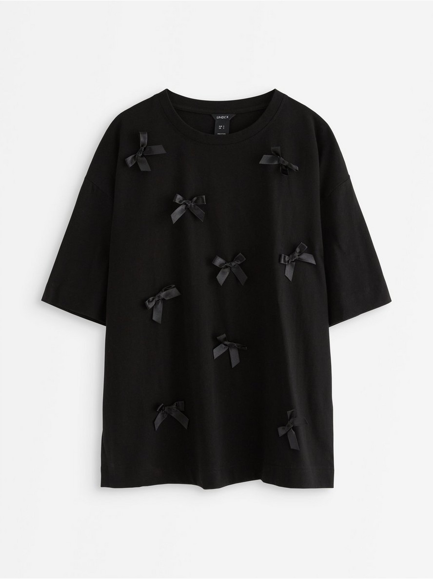Mekana majica sa prišivenim satenskim mašnicama po celoj površini.