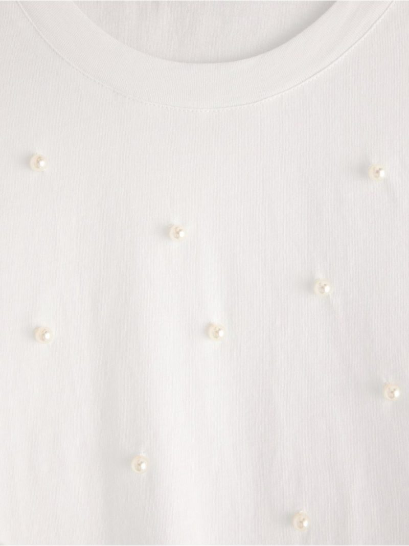 Majica sa kratkim rukavima i perlicama na prednjem delu.
