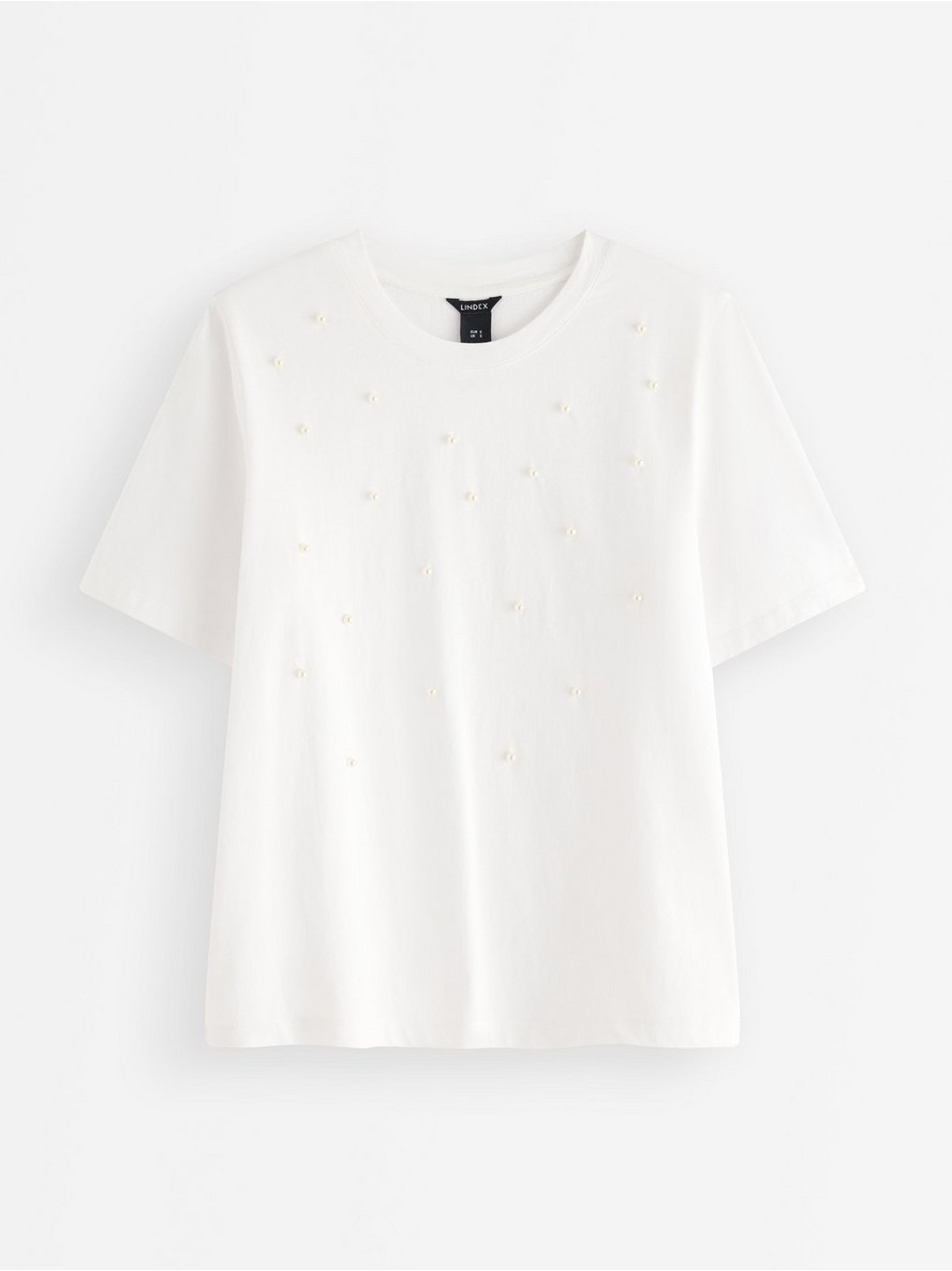 Majica sa kratkim rukavima i perlicama na prednjem delu.