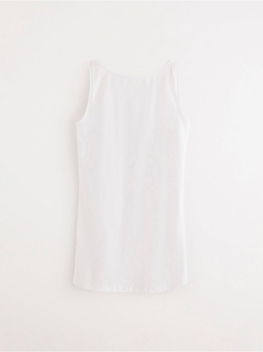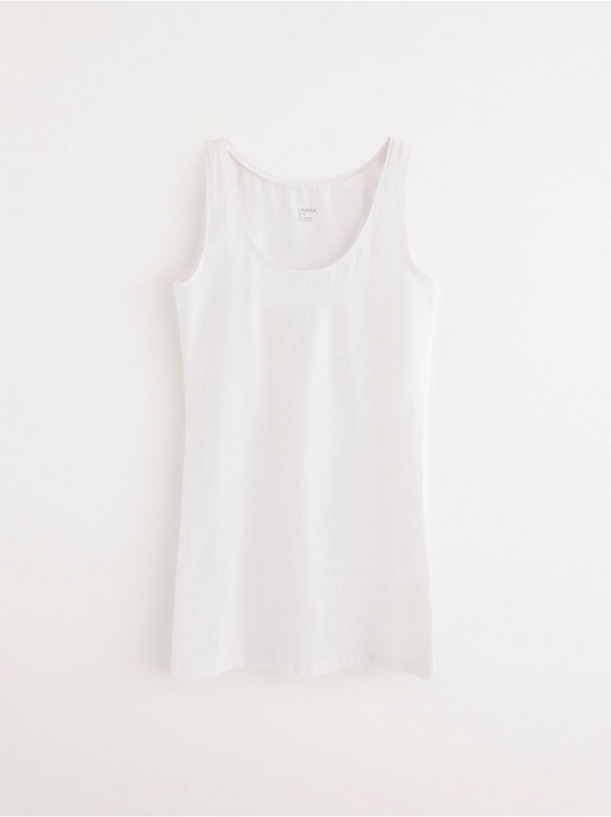 Duga potkošulja bez rukava izrađena od mekane mešavine recikliranog pamuka. Savršena za svakodnevno nošenje.