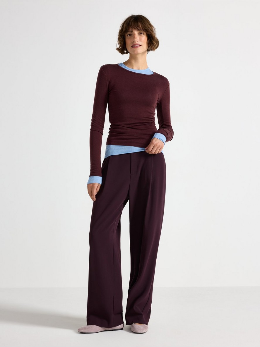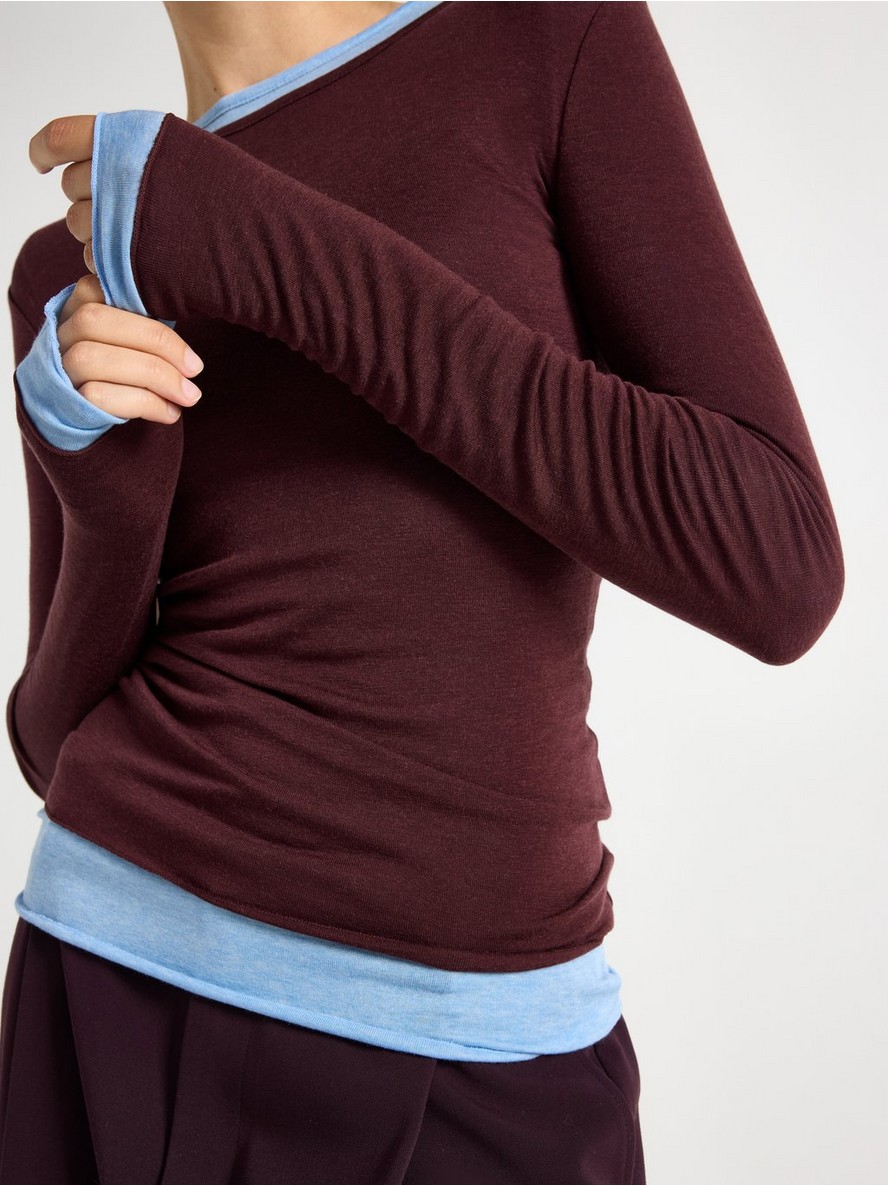 Mekan proziran top od mešavine vune sa dugim rukavima.