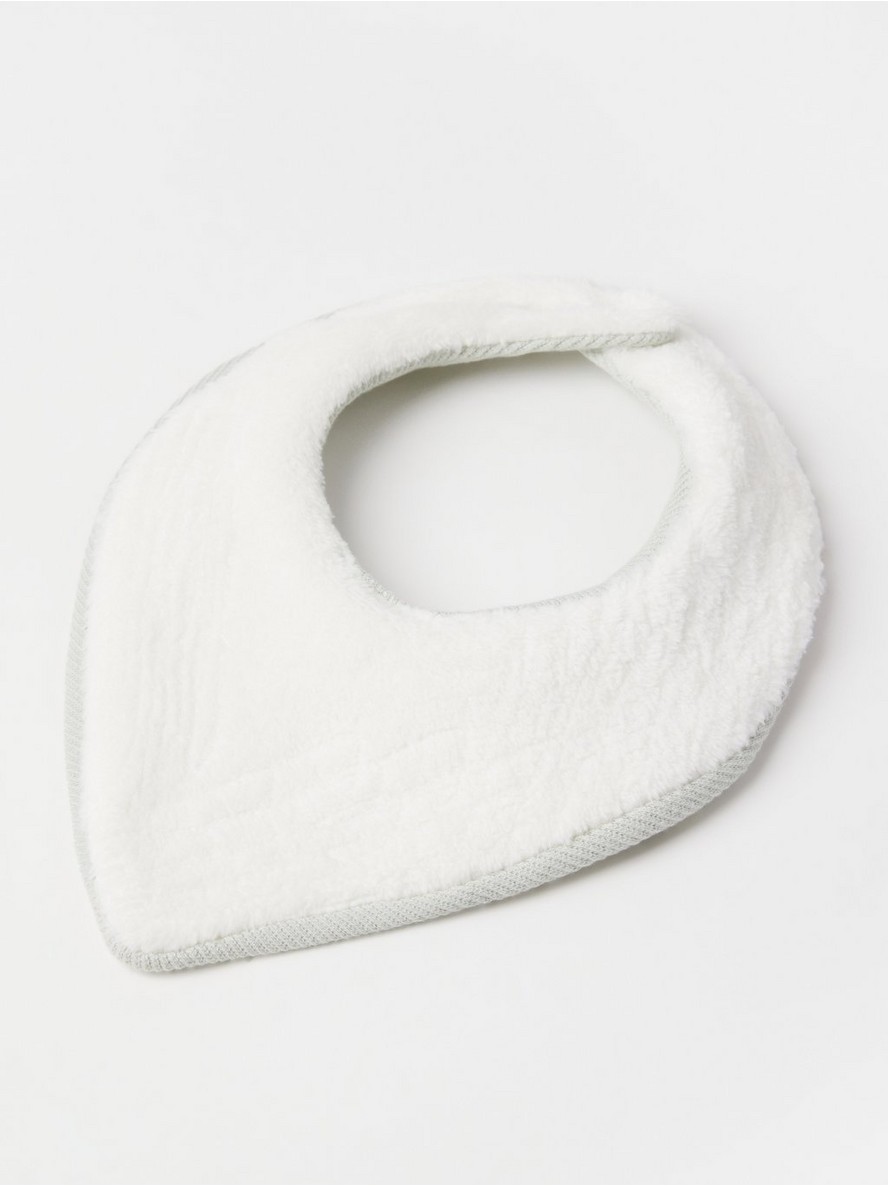 Pregača od rebrastog džersija sa mekom runastom postavom i podesivim zatvaranjem na drukere pozadi.