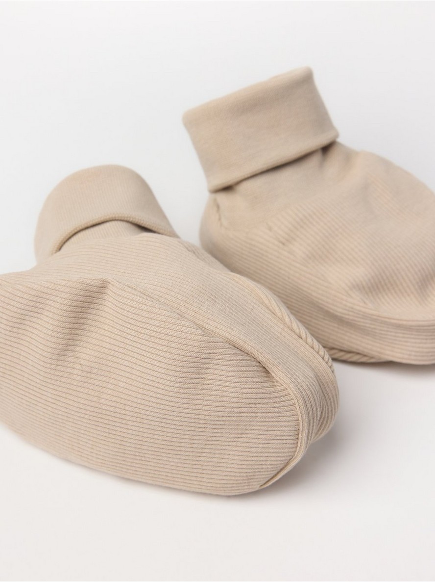 Meke rebraste pamučne stopalice za novorođenčad sa preklopnim manžetnama.