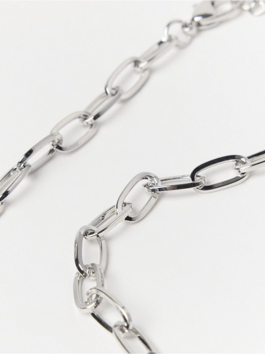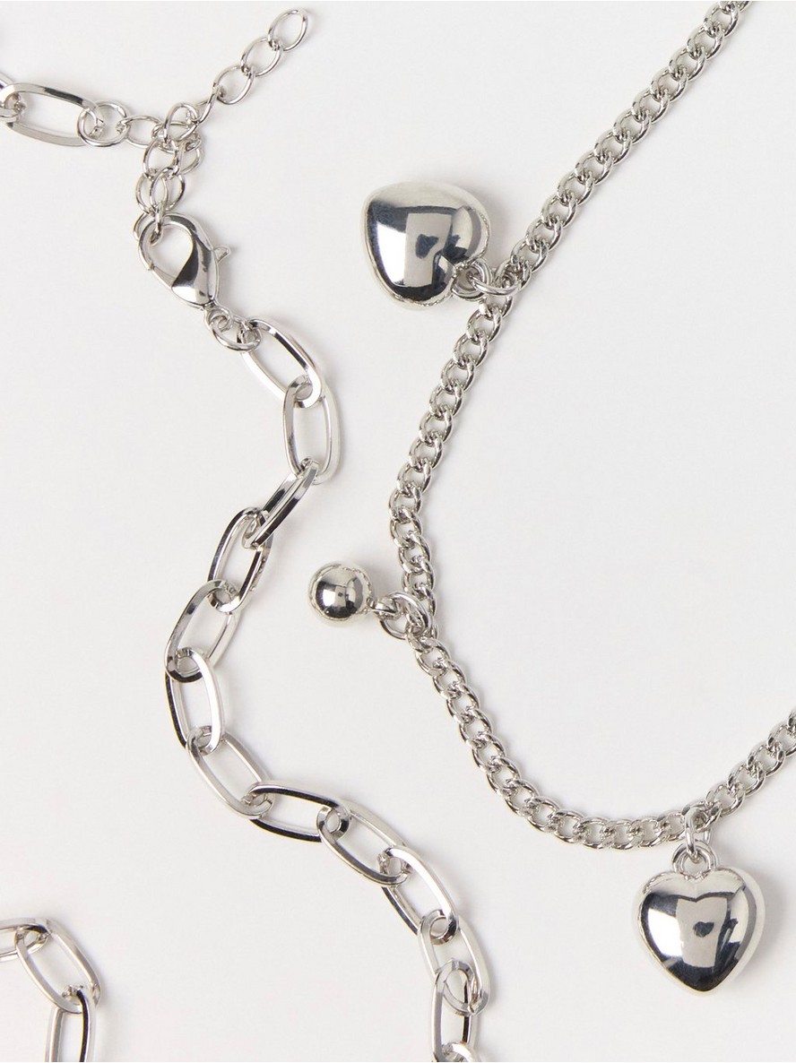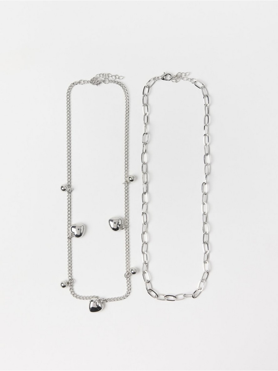 Dve ogrlice sa metalnim lancima različitog izgleda.