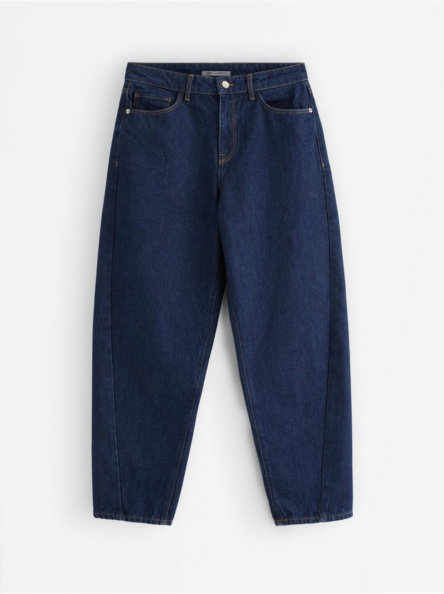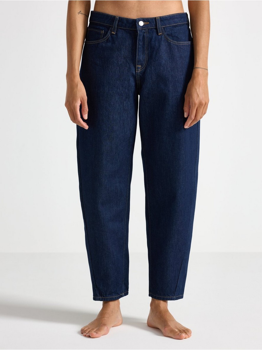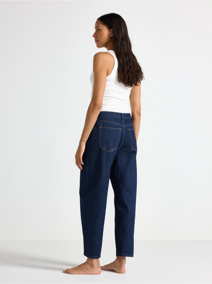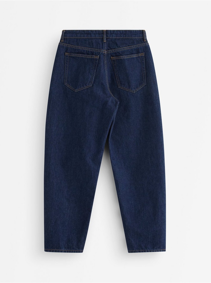 Sužene farmerke od pamučnog denima sa uvijenim šavovima, srednjim strukom i dužinom do članaka.