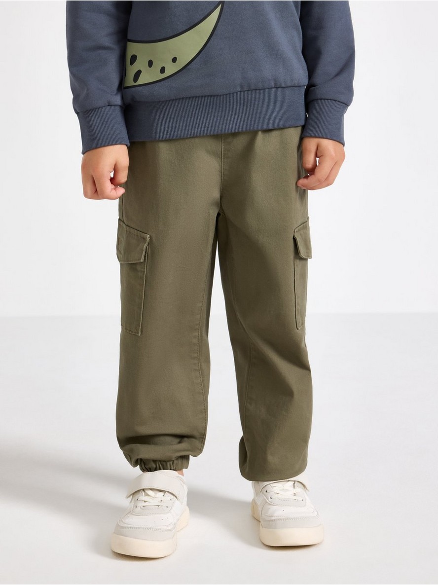 Udobne cargo pantalone od tkanog pamuka, sa opuštenim krojem i podesivim strukom.