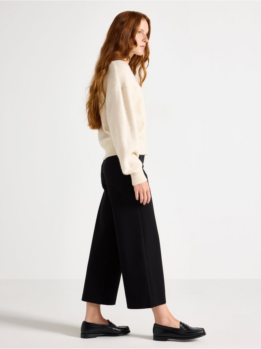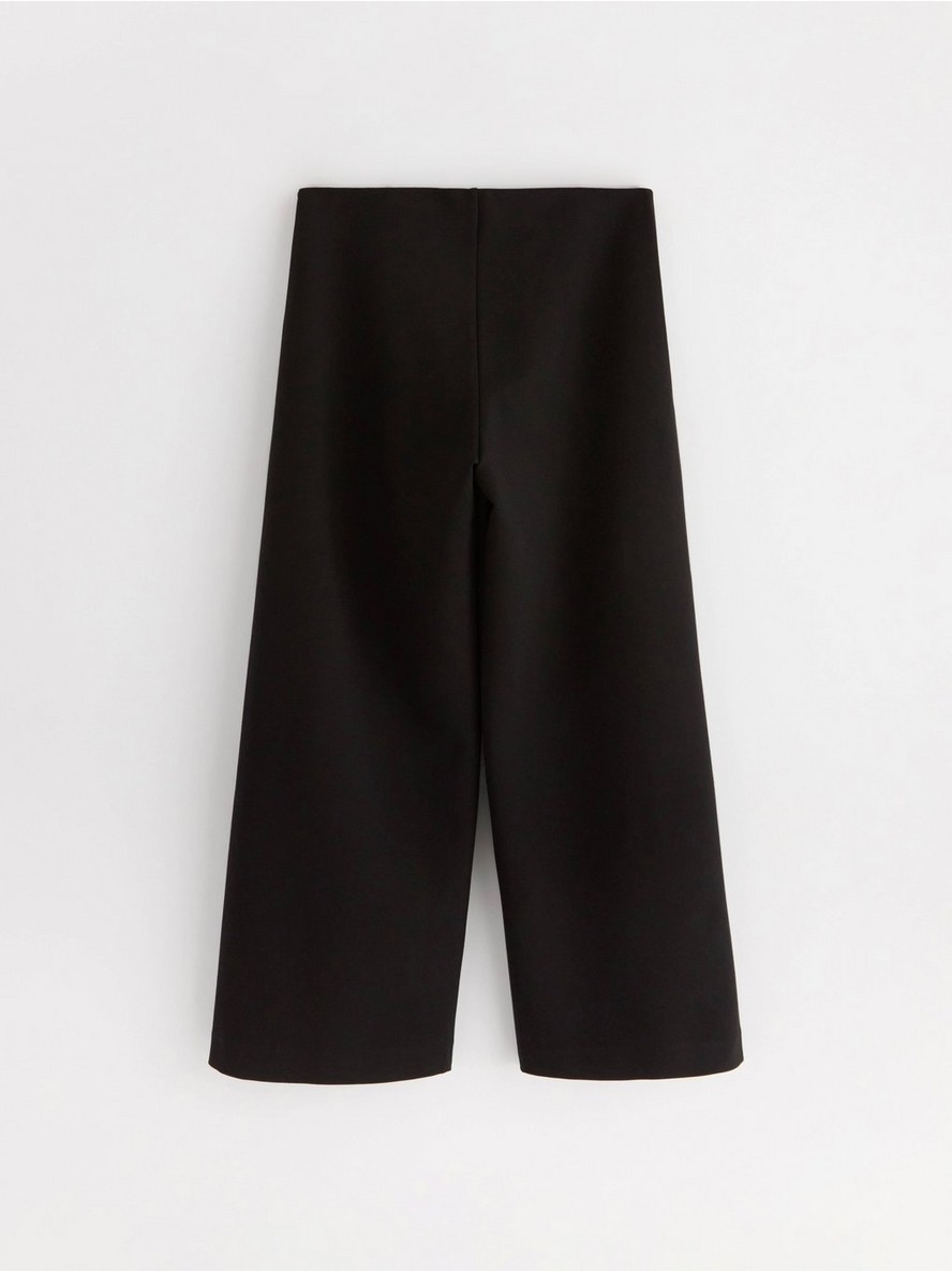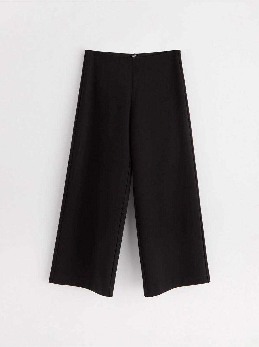 Moderne pantalone od čvrstog punto džerseja sa širokim, skraćenim nogavicama i elastičnim strukom.