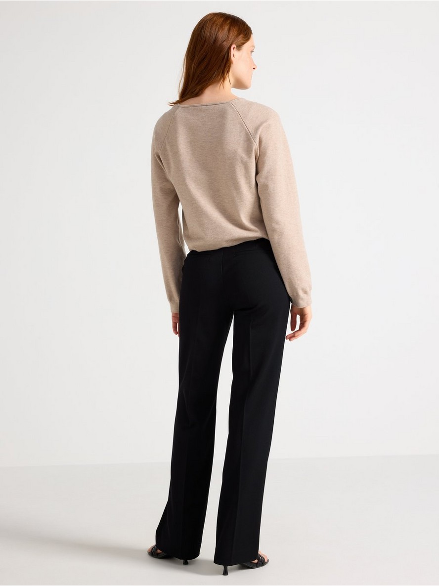 Pantalone sa regularnim strukom i zvonastim nogavicama.