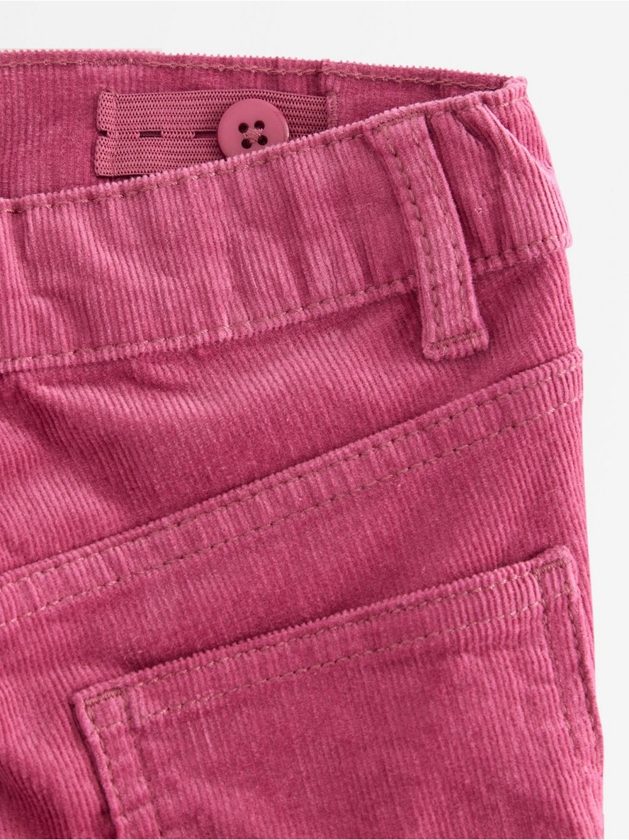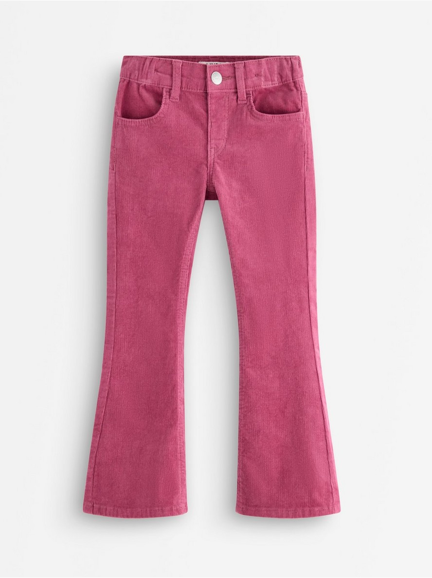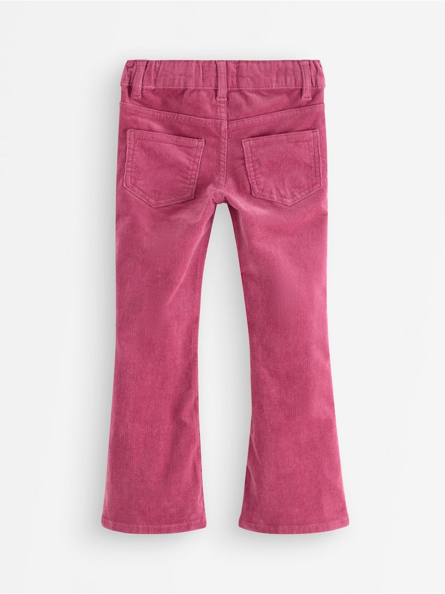 Meke i udobne pantalone od manšestra sa zvonastim nogavicama i elastičnim, podesivim strukom.