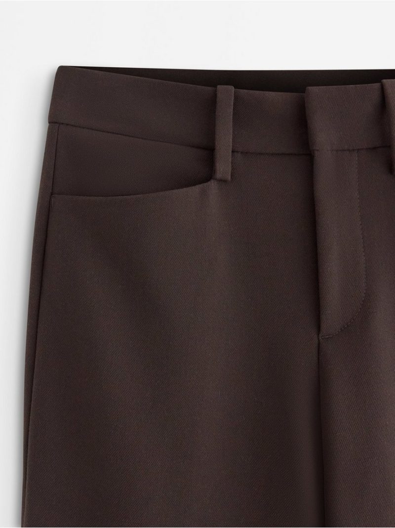 Elegantne pantalone od tkanog materijala sa srednjim strukom i zvonolikim krojem.